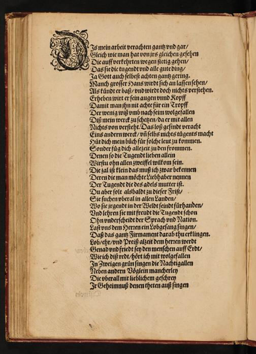 Wo ſie jrgendt in der Weldt ſeindt fuͤrhanden/ Vpded lehren ſie mit freudt die Tugendt ſchon Ohnvnderſcheidt der Sprach vnd Nation.