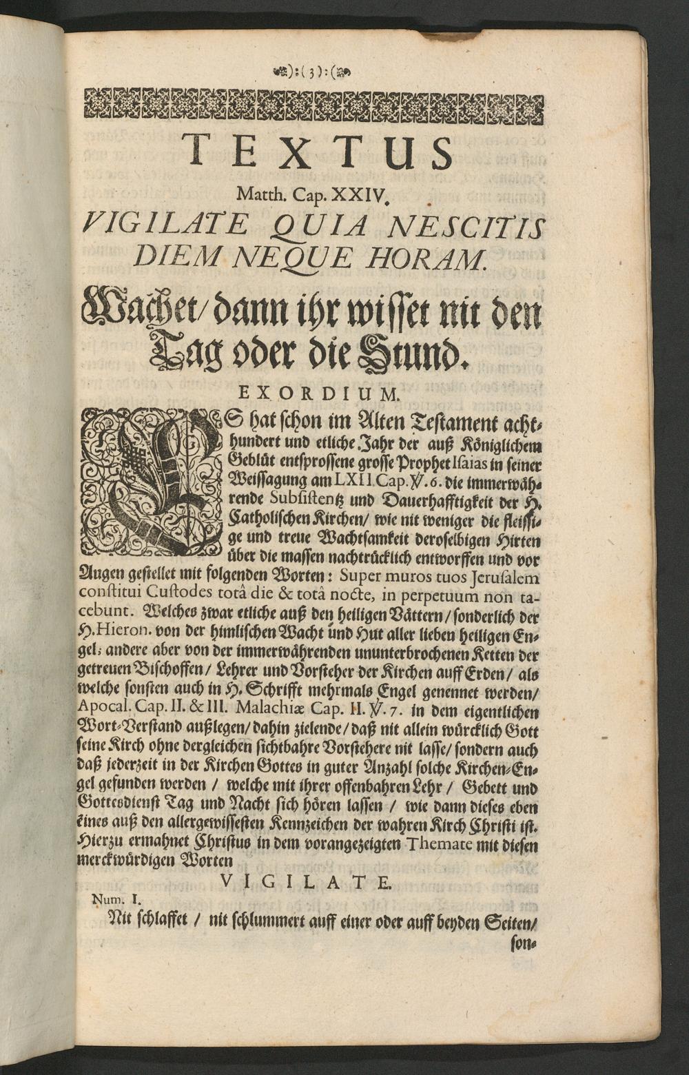 Pastor Vigilans. Oder Christliche Leich-Rede Von Nothwendiger Hut und Wachtsamkeit/ die alle Christen in diesem zeitlichen und vergänglichen Leben/ sonderlich aber Geistliche Seelen-Hirten zuhalten schuldig seynd : Auß Gottes H. Wort/ nach dessen wahrhafftem Vättermässigen Verstand abgehandelt/ und mündlich vorgetragen in hochansehnlicher und sehr Volckreicher Versamblung/ Als deß Hochwürdigsten in Gott Vattern/ Fürsten und Herrns Herrns Damiani Hartardi, Deß Heil. Stuhls zu Mayntz Ertz-Bischoffen/ deß H. Römis. Reichs durch Germanien Ertz-Cantzlers und Chur-Fürstens/ Tods-verblichener Leichnamb in St. Laurentii Capell des Hohen Dhom-Stiffts versencket/ der entleibten Seel aber nach Uhr-alten Catholischem Brauch/ durch das Göttliche Ampt der H. Mess. und übriger Besingnuß die schuldige Suffragia erstattet worden / Durch den Hochwürdigen in Gott Vattern/ und Herrn/ Herrn Adolphum Godefridum, Bischoffen zu Diocletianopel und Mayntzischen Suffraganeum, der H. Schrifft Doctorn, Pastorn und Dhom-Predigern in Mayntz