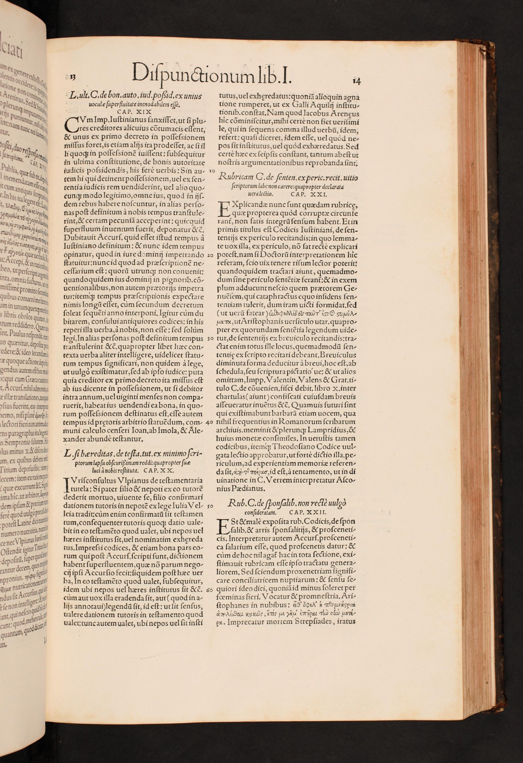 Rub. Q. de ſponſalib. non rects uulgò conſideratam. CAP. XXII. St& malè expoſita rub.Codicis, de ſpon ſalib.& arris ſponſalitijs,& proſceneti- cis. Interpretatur autem Accurſ. proſceneti- ca ſalarium eſſe, quod proſcenetis datur:& cùm de hoc nilagat᷑ hac in tota ſectione, exi- ſtimauit rubricam eſſe ipſo tractatu genera- liorem. Sed ſciendum proxenetriam ſignifi- care conciliatricem nuptiarum:& ſenſu ſe-