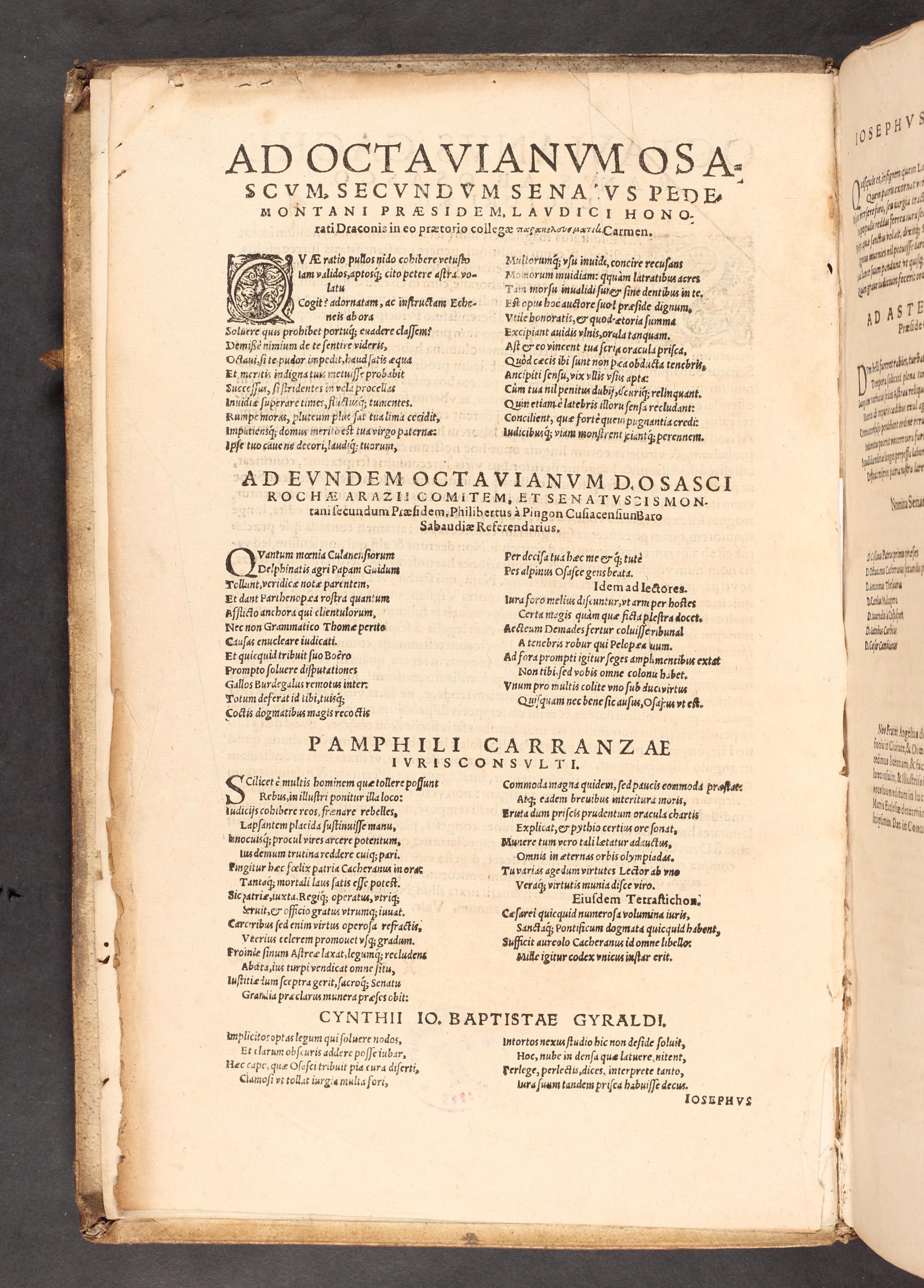 AD EVNDEM OCTAVIANVM D. OSASCI ROCHXEARAZzIICOMITEM, ET SENATVSDUISMON- tani ſecundum Piæſidem, Philibertus à Pingon Cuſiacenſiunßaro Sabaudiæ Referendarius,