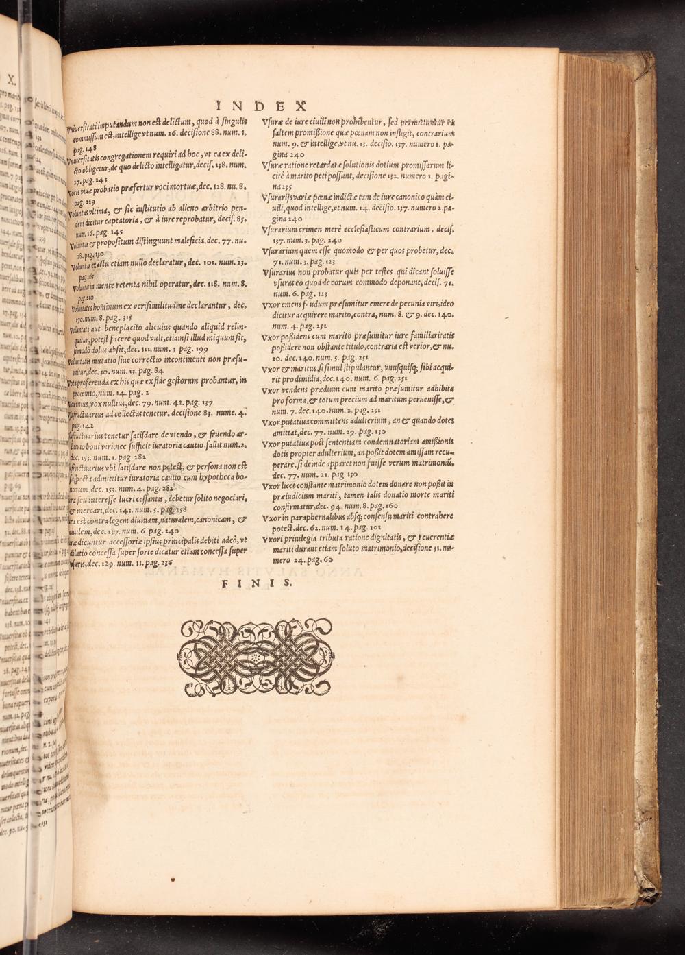 Vſuræ de iure ciuili non prohibentur, fed permituntuy es ſaltem promißione quæ pœnam non infligit, contrarium num. 9.& intellige, vt nu. u3. dec iſio. 12⸗. numero i. pa- gina 240 Vſuræ ratione retardatæ ſolutionis dotium promiſſarum li- citè à marito peti poſſunt, deciſione uz. numero 1. pagi= NMd 235 Vſurarijsvariæ pœnæ indictæ tam de iure canonico quàm ci- uili, quod intellige, vt num. 14. deciſio. ¹37. numero 2. pa- gina 240 Vſurarium crimen merè eccleſiaſticum contrarium, deciſ. 137. Hun. 3. Pdg. 240 Vſurarium quem eſſe quomodo& per quos probetur, dec. 7i. num. 3. pag. ¹23 Vſurarius non probatur quis per teſtes qui dicant ſoluiſſe vſuras eo quodde rorunt commodo deponant, deciſ. 71. num. 6. pag. 123 vxor emens frudum præſumitur emere de pecunia viri, ideo dicitur acquirere marito, contra, num. 8.& 9. dec. 140. num. 4. pag. 25¹ vxor poßidens cum marito præſumitur iure familiaritatis poßidere non obſtante titulo,contraria eſt verior,& nu. 20. dec. 140. num. 5. pag. 251