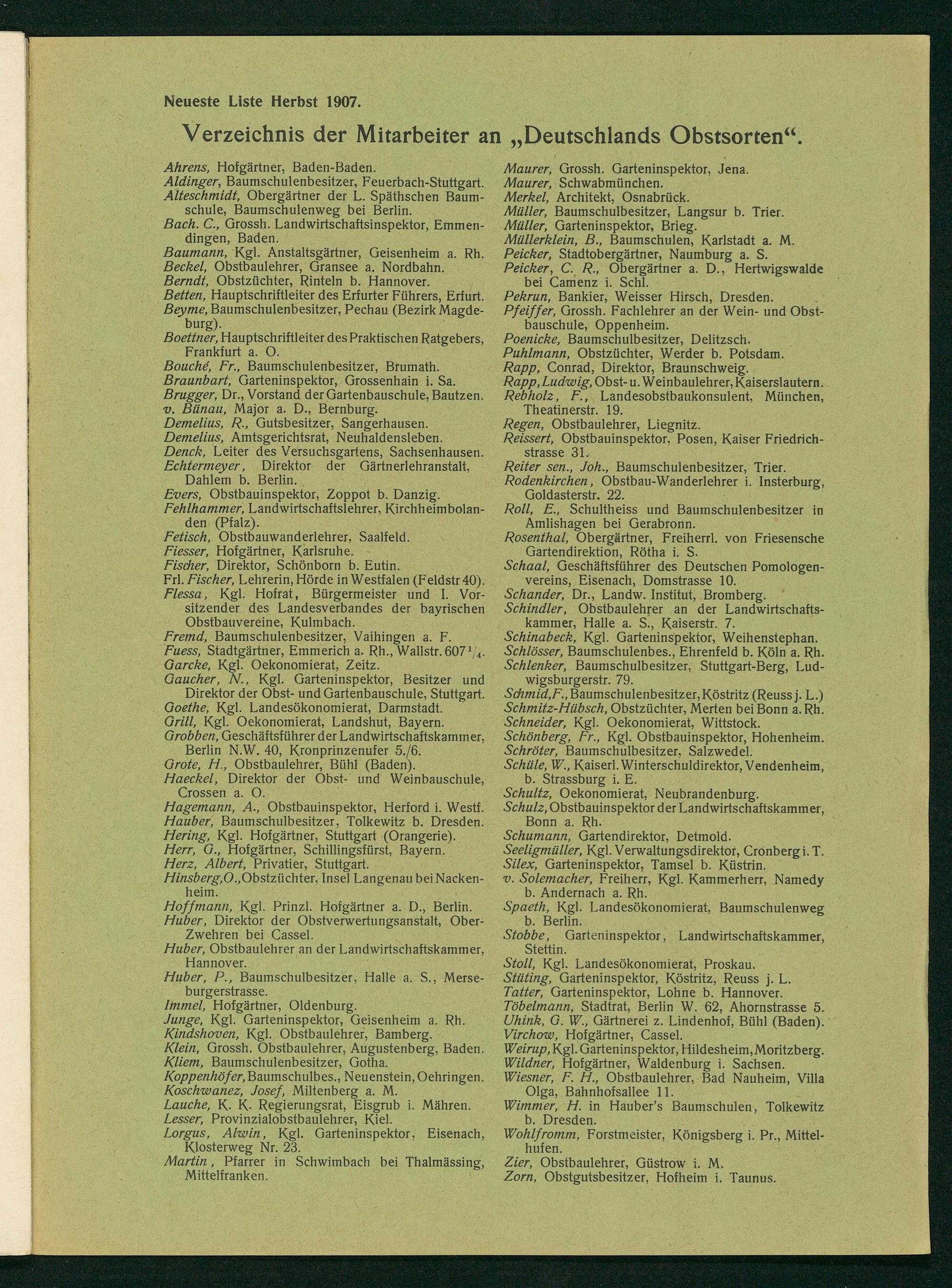 HNuber, Obstbaulehrer an der Landwirtschaftskammer, Hannover. uber, P., Baumschulbesitzer, Halle a. S., Merse-