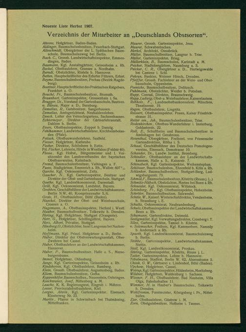 Verzeichnis der Mitarbeiter an„Deutschlands Obstsorten“.