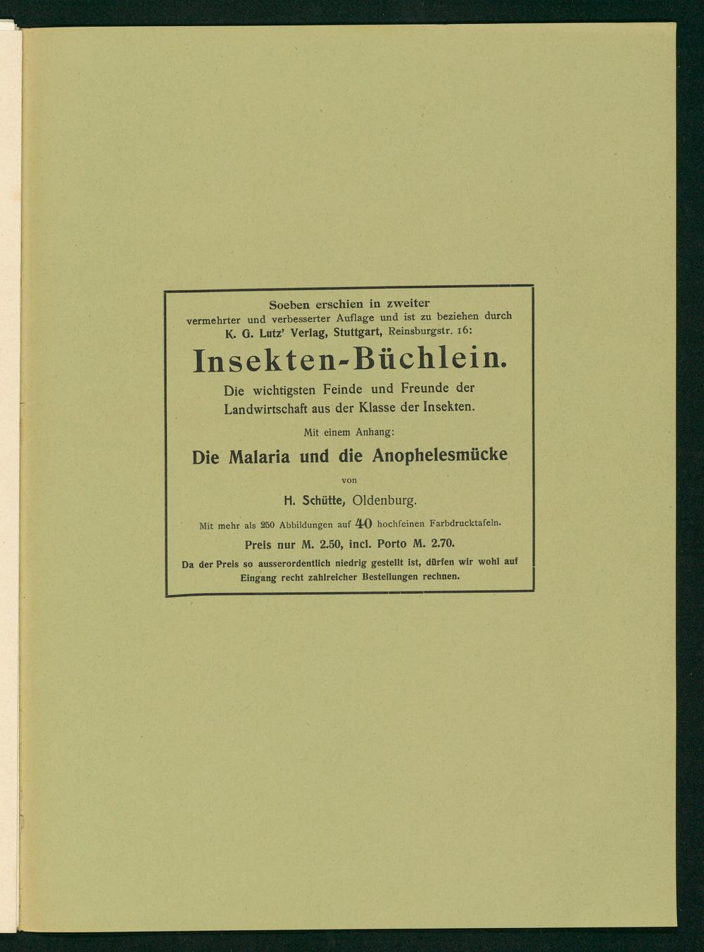 Soeben erschien in zweiter vermehrter und verbesserter Auflage und ist zu beziehen durch K. G. Lutz' Verlag, Stuttgart, Reinsburgstr. 16: