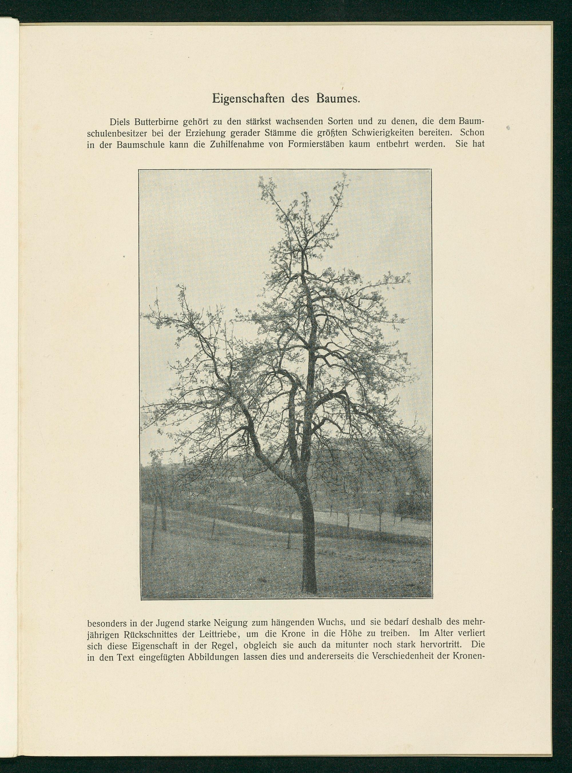 Diels Butterbirne gehört zu den stärkst wachsenden Sorten und zu denen, die dem Baum- schulenbesitzer bei der Erziehung gerader Stämme die größten Schwierigkeiten bereiten. Schon in der Baumschule kann die Zuhilfenahme von Formierstäben kaum entbehrt werden. Sie hat