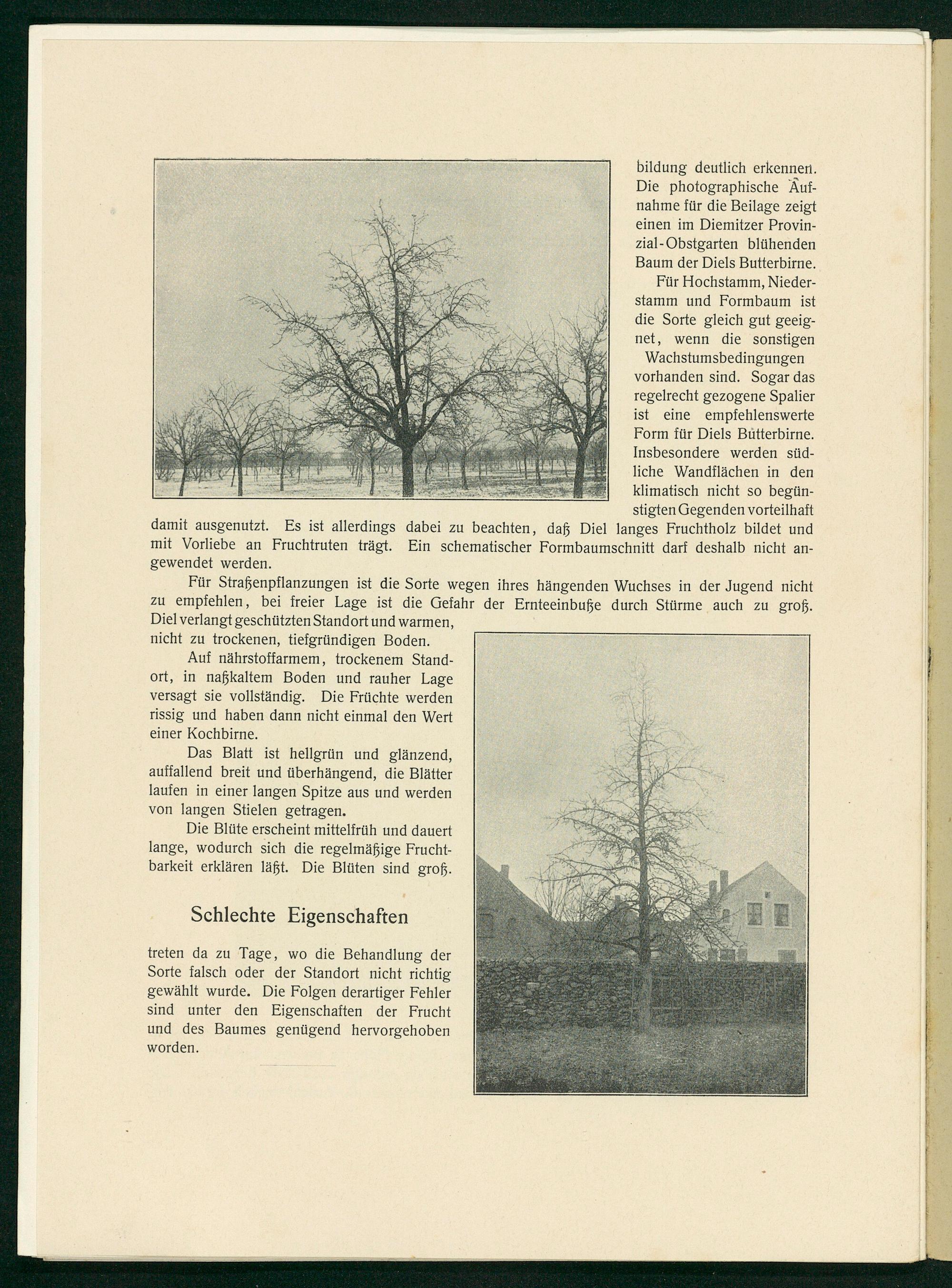 vorhanden sind. Sogar das regelrecht gezogene Spalier ist eine empfehlenswerte Form für Diels Butterbirne. Insbesondere werden süd-— liche Wandflächen in den klimatisch nicht so begün- stigten Gegenden vorteilhaft