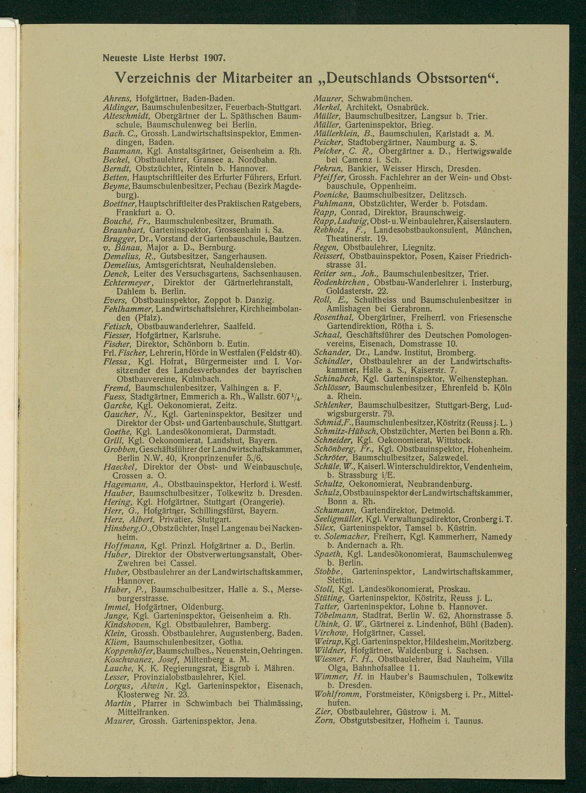 Verzeichnis der Mitarbeiter an„Deutschlands Obstsorten“.