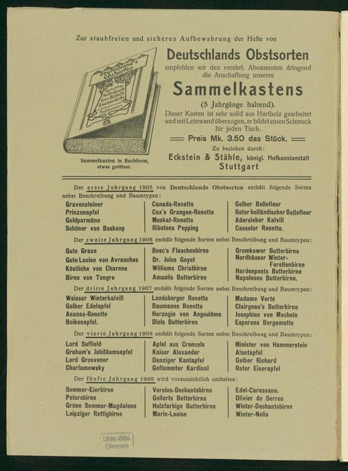 Der erste Jahrgang 1905 von Deutschlands Obstsorten enthält folgende Sorten