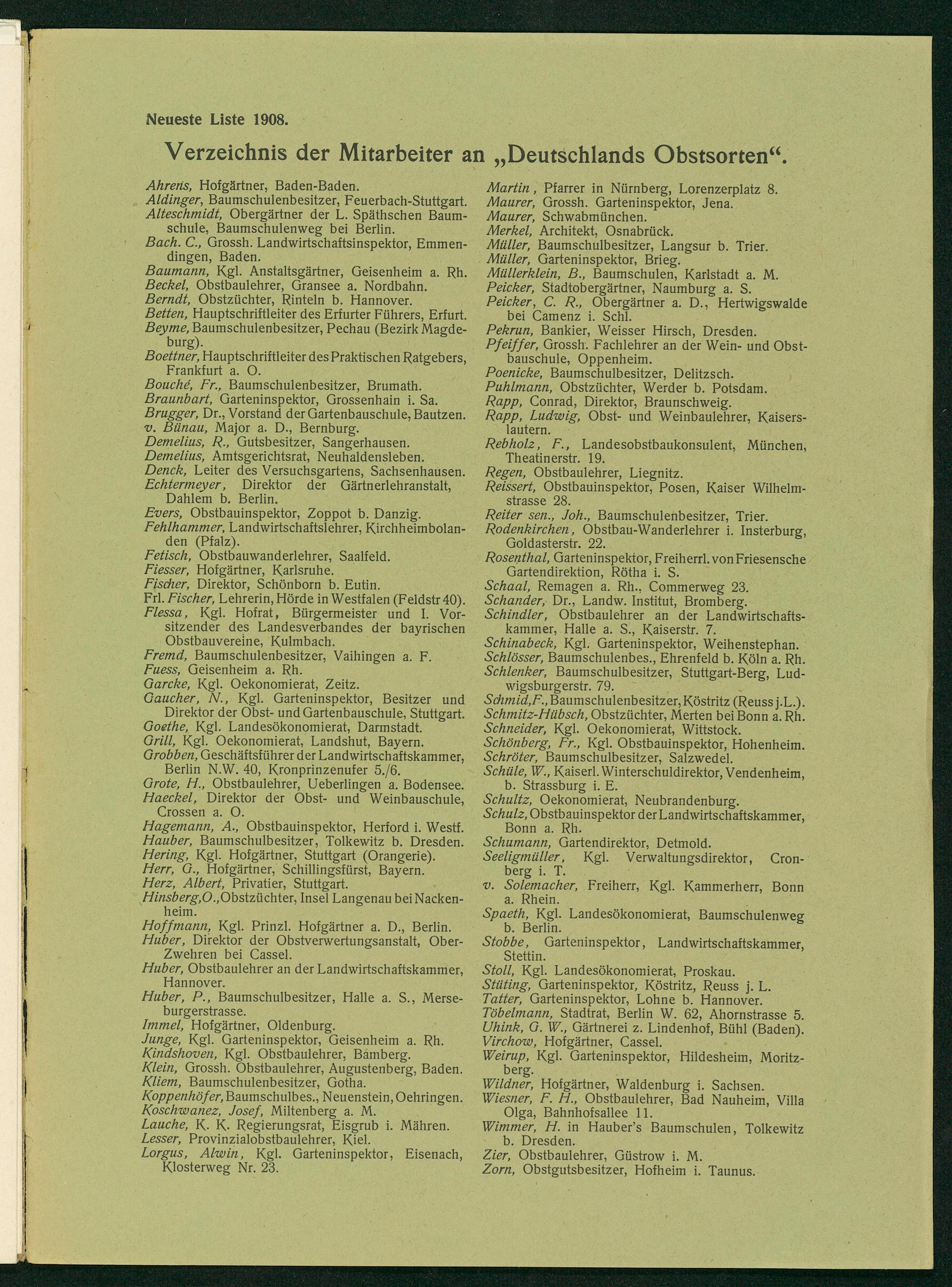 Verzeichnis der Mitarbeiter an„Deutschlands Obstsorten“.
