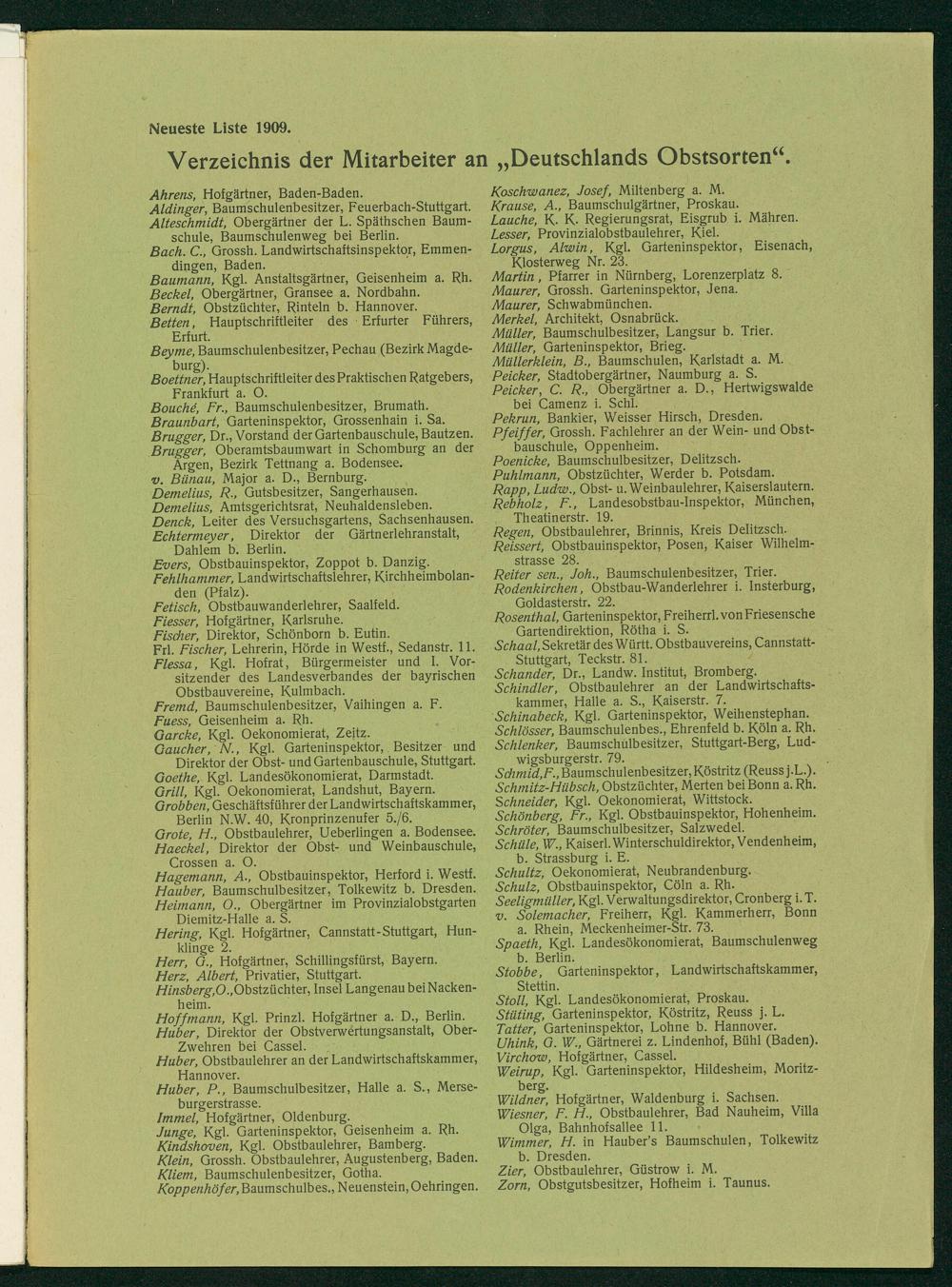 Verzeichnis der Mitarbeiter an„Deutschlands Obstsorten“.
