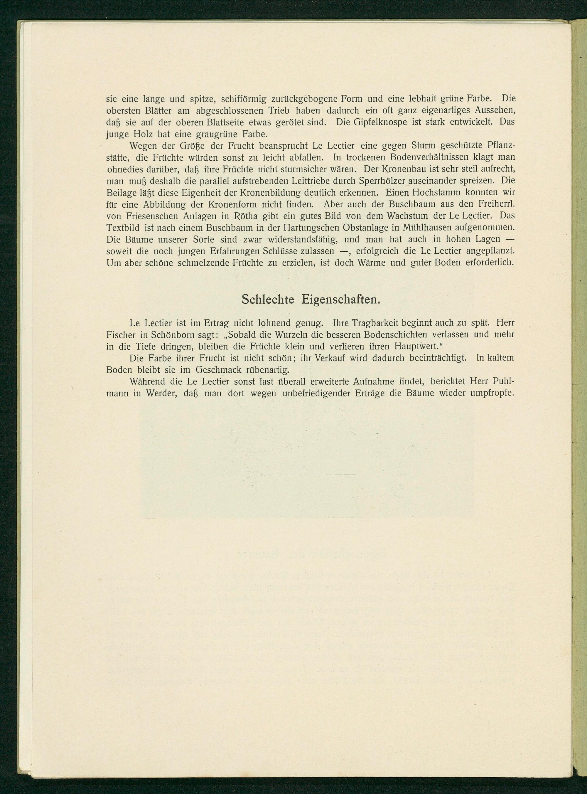 Während die Le Lectier sonst fast überall erweiterte Aufnahme findet, berichtet Herr Puhl- mann in Werder, daß man dort wegen unbefriedigender Erträge die Bäume wieder umpfropfe.