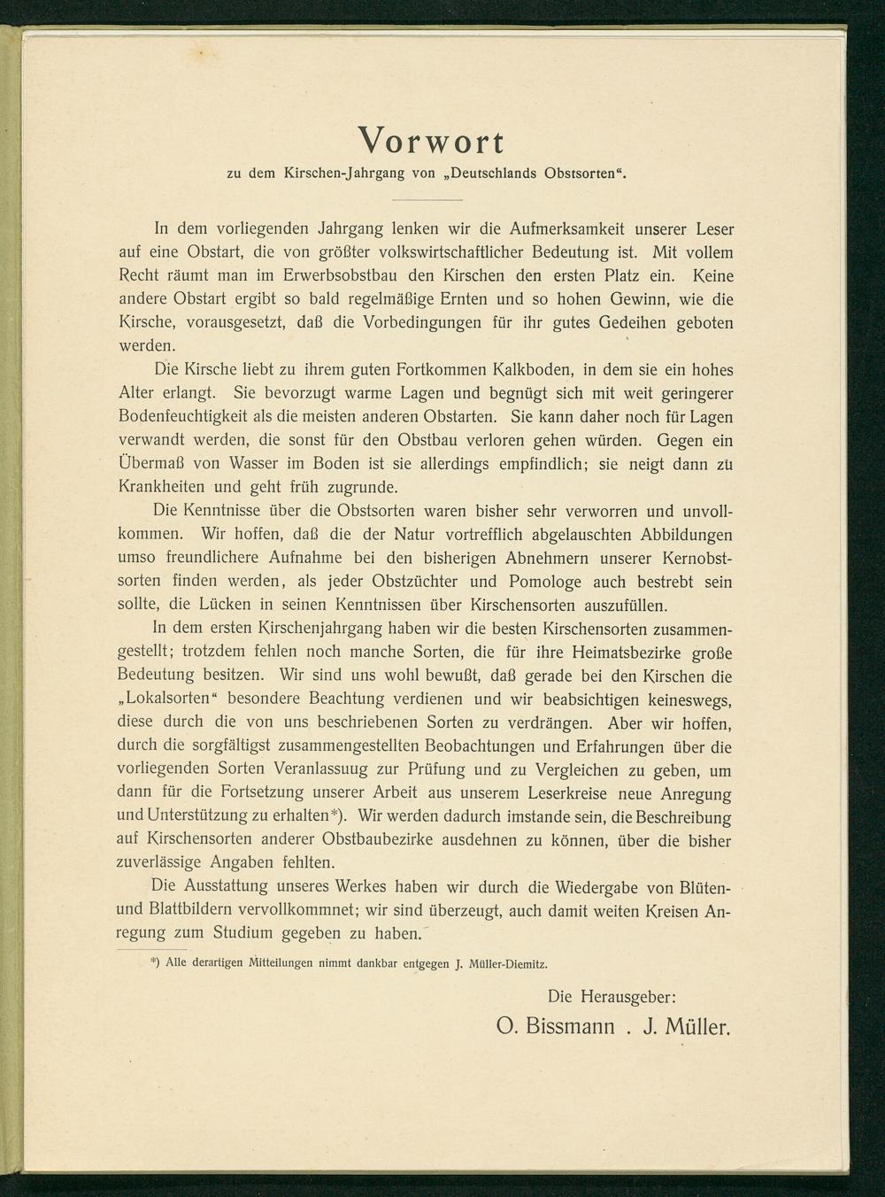 Vorwort zu dem Kirschen-Jahrgang von„Deutschlands Obstsorten“.