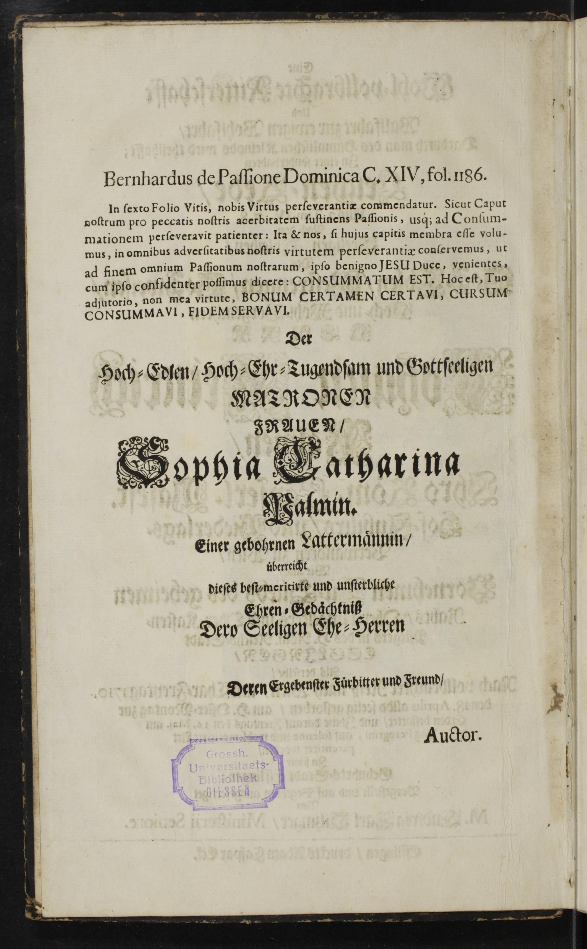 Einer gebohrnen Lattermaͤnnin/ uͤberreicht dieſes beſt⸗meritirte und unſterbliche Ehren⸗Gedaͤchkniz Dero Seeligen Ehe⸗Herren