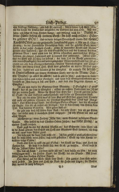 Ich bilde mir die faule Ruh nicht ein: Ich bin geruͤſt es muß gefochten ſeyn/ haſt du nicht ſelbſt/ mein HErꝛ/ dich muͤd geſtritten? Sollt ich/ dein Knecht/ er⸗ waͤhlen traͤge Sitten? 9. 84