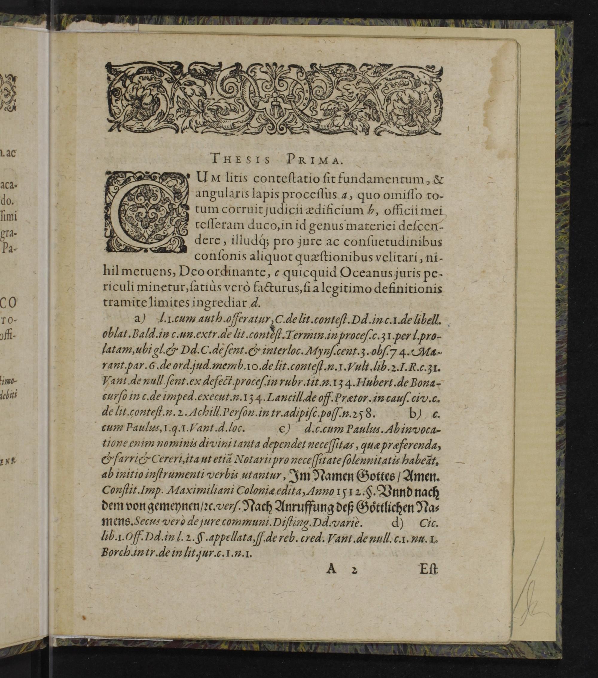 UM litis conteſtatio ſit fundamentum,& angularis lapis proceſſus a, quo omiſſo to- tum corruit judicii ædificium b, officii mei 6 teſſeram duco, in id genus materiei deſcen- à dere, illudq́; pro jure ac conſuetudinibus conſonis aliquot quæſtionibus velitari, ni- hil metuens, Deo ordinante, c quicquid Oceanus juris pe- riculi minetur, ſatiũs verò facturus, ſia legitimo definitionis tramite limites ingrediar d.