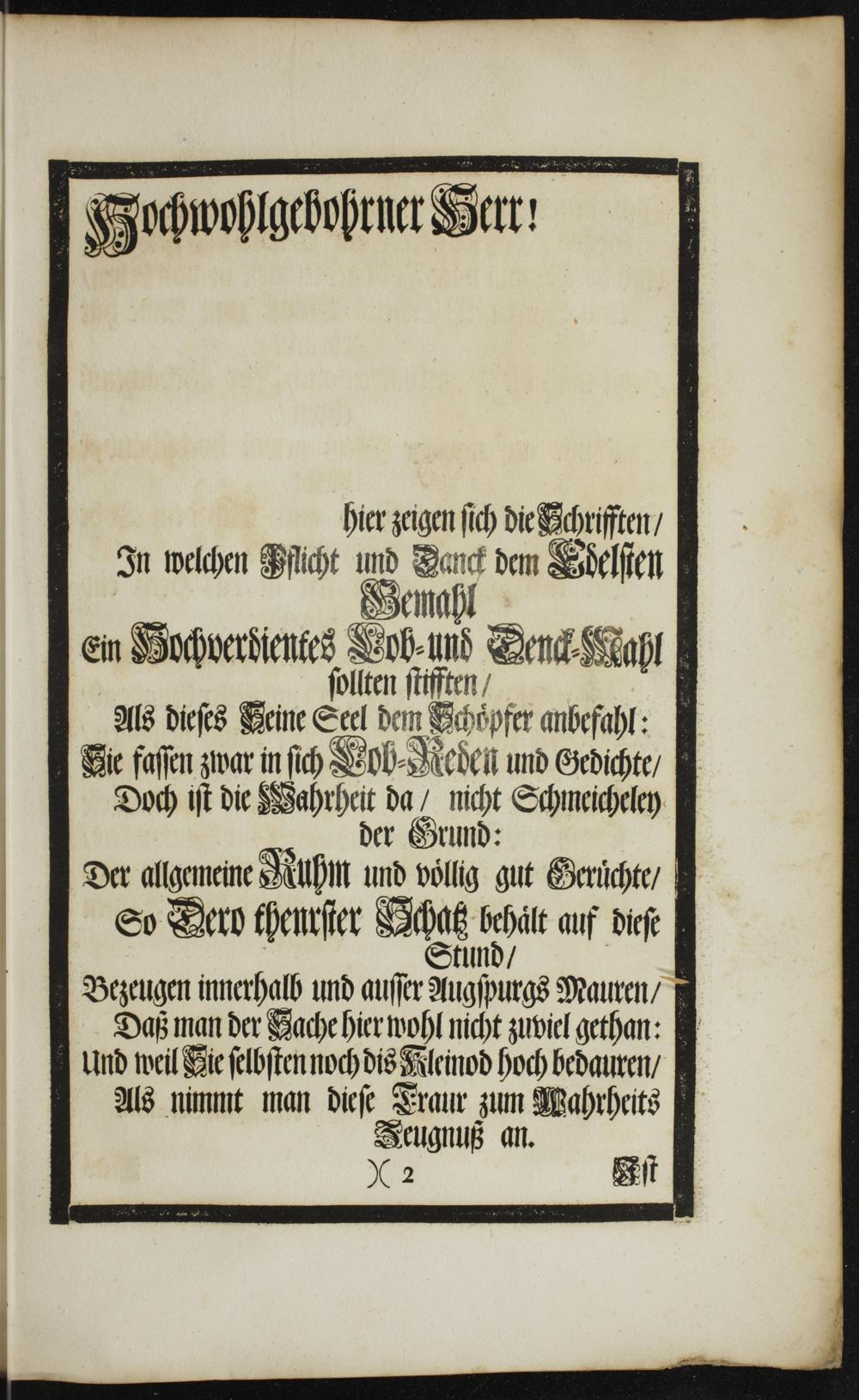 Bezeugen innerhalb und auſſer Augſpurgs Mauren/ † 1Daß man der Gache hier wohl nicht zuviel gethan: Und weil Vie ſelbſten noch dis Rleinod hoch bedauren/