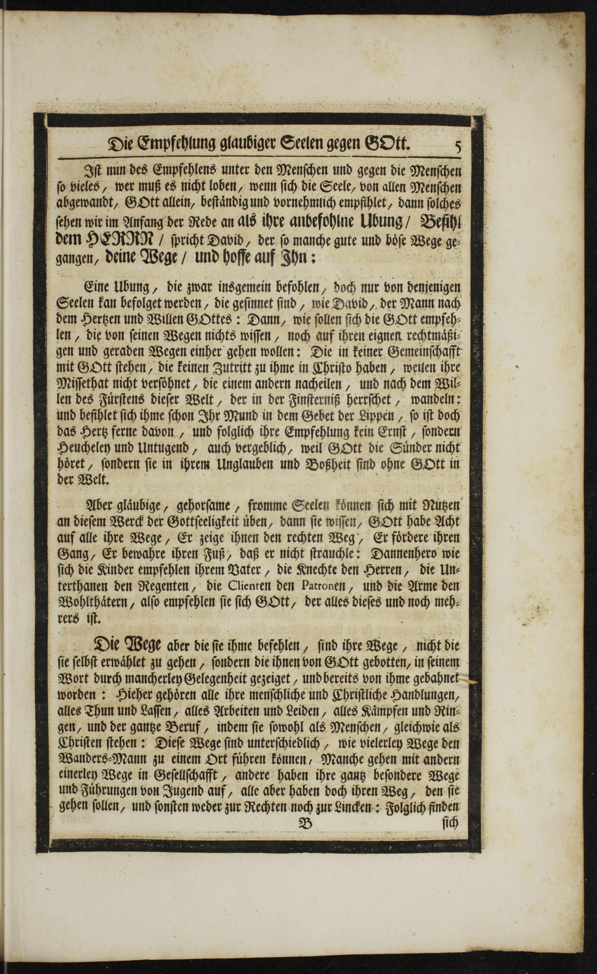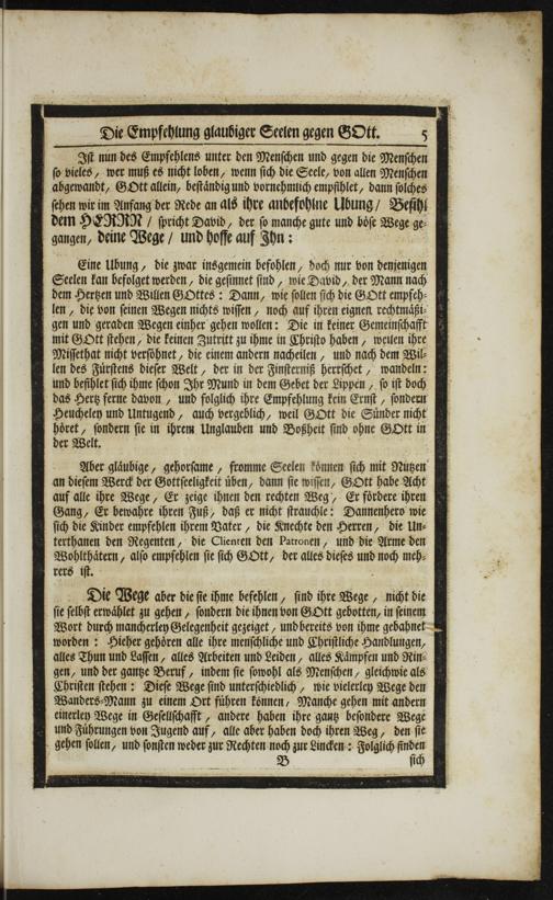 Die Wege aber die ſie ihme befehlen, ſind ihre Wege, niht die b ſie ſelbſt erwaͤhlet zu gehen, ſondern die ihnen von GOtt gebotten, in ſeinem Wort durch mancherley Gelegenheit gezeiget, und bereits von ihme gebahnet worden: Hieher gehoͤren alle ihre menſchliche und Chriſtliche Handlungen, alles Thun und Laſſen, alles Arbeiten und Leiden, alles Kaͤmpfen und Rin⸗