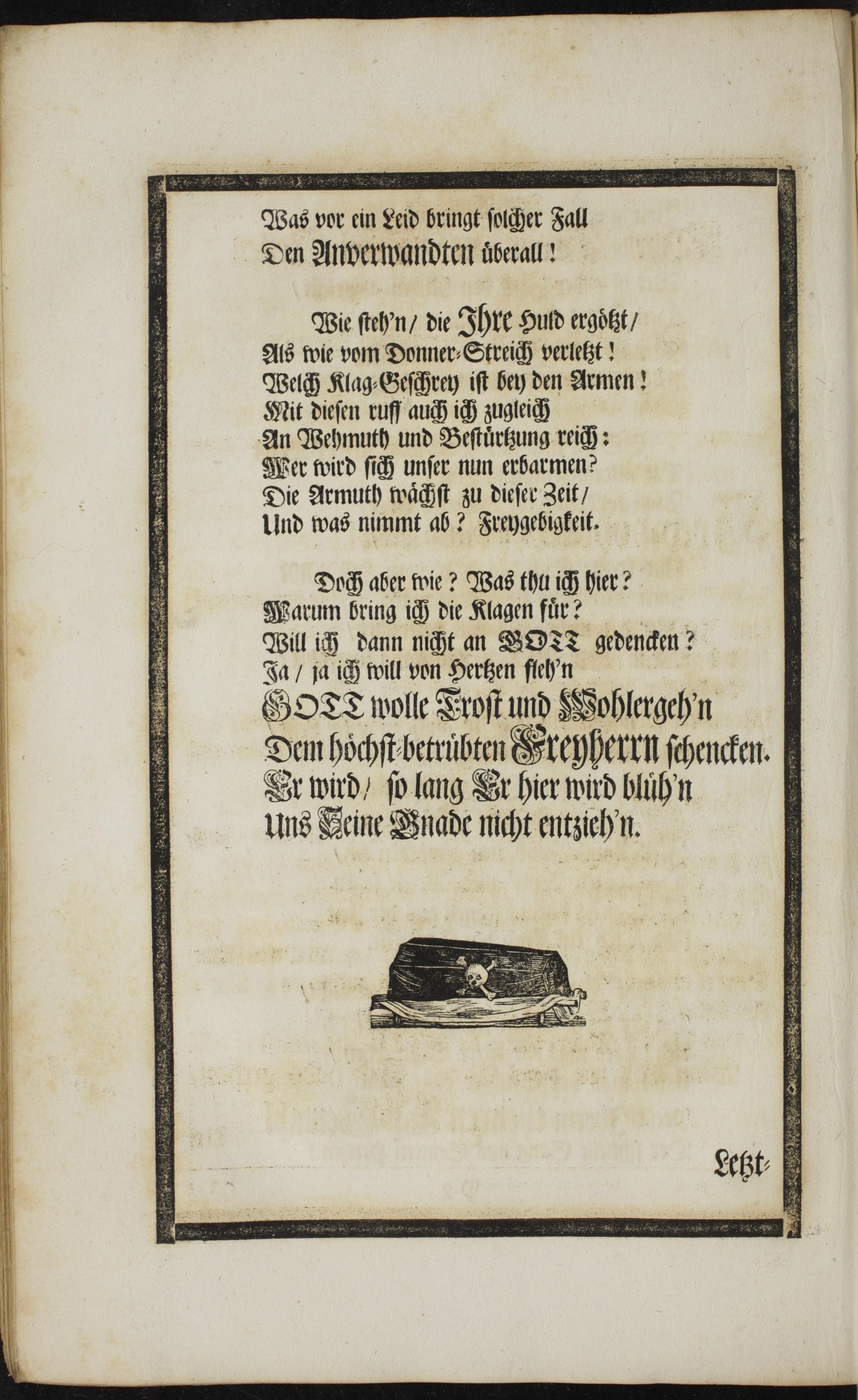 GOTS wolle Troſt und Wohlergeh n Dem höchſt betruͤbten Greyherrn ſchencken.