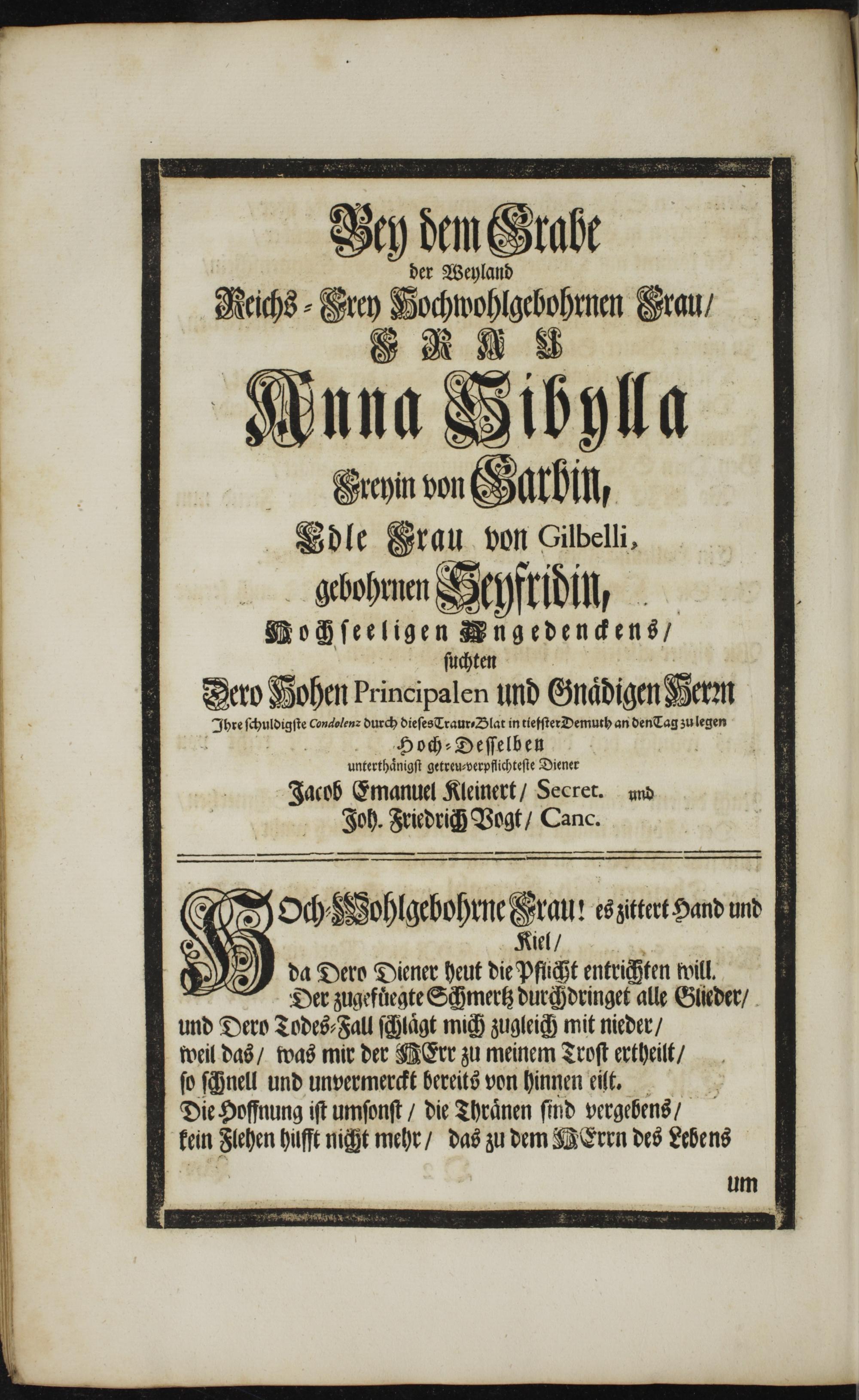Ihre ſchuldigſte Condolen durch dieſes Traur⸗Zlat in tiefſter Demuth an den Cag zulegen