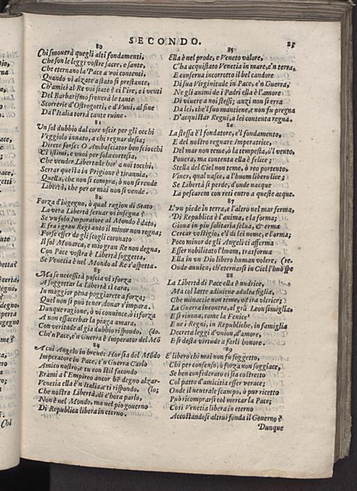 T(2n Paee voſtra? Libentd ſoggetta, Ella in vn Dio libero human volere,(re- ottar Je Venetia è nel Mfondo al Ke s'aſpetta. Onde auuien, ahenenauſ in Ciel lhuõ ſpe cerla; 2c eeeſe ni⸗ visfopxa Ia Iihertd di Pace ella d᷑ nudnicce, 1- egno, In 8 Ia 4. L erta 7 cara W Aa col latte adiuiene adulta figlia, 0 2e Tee⸗ 5 ena poggiarete a forxa; Che minaccie non temey od ira vltrice⸗— dedn 8 non ſi pud tener, donar vimpara. Ia Guerta incontratal graä Leon ſimiglia⸗ perta vie, Ie ragione, vi conuince,ò isforxa Eſi rinoua, tome la Fenices h, non Tacerbar la piaga amara, Ene i Aegni, in Republiche, in famiglia