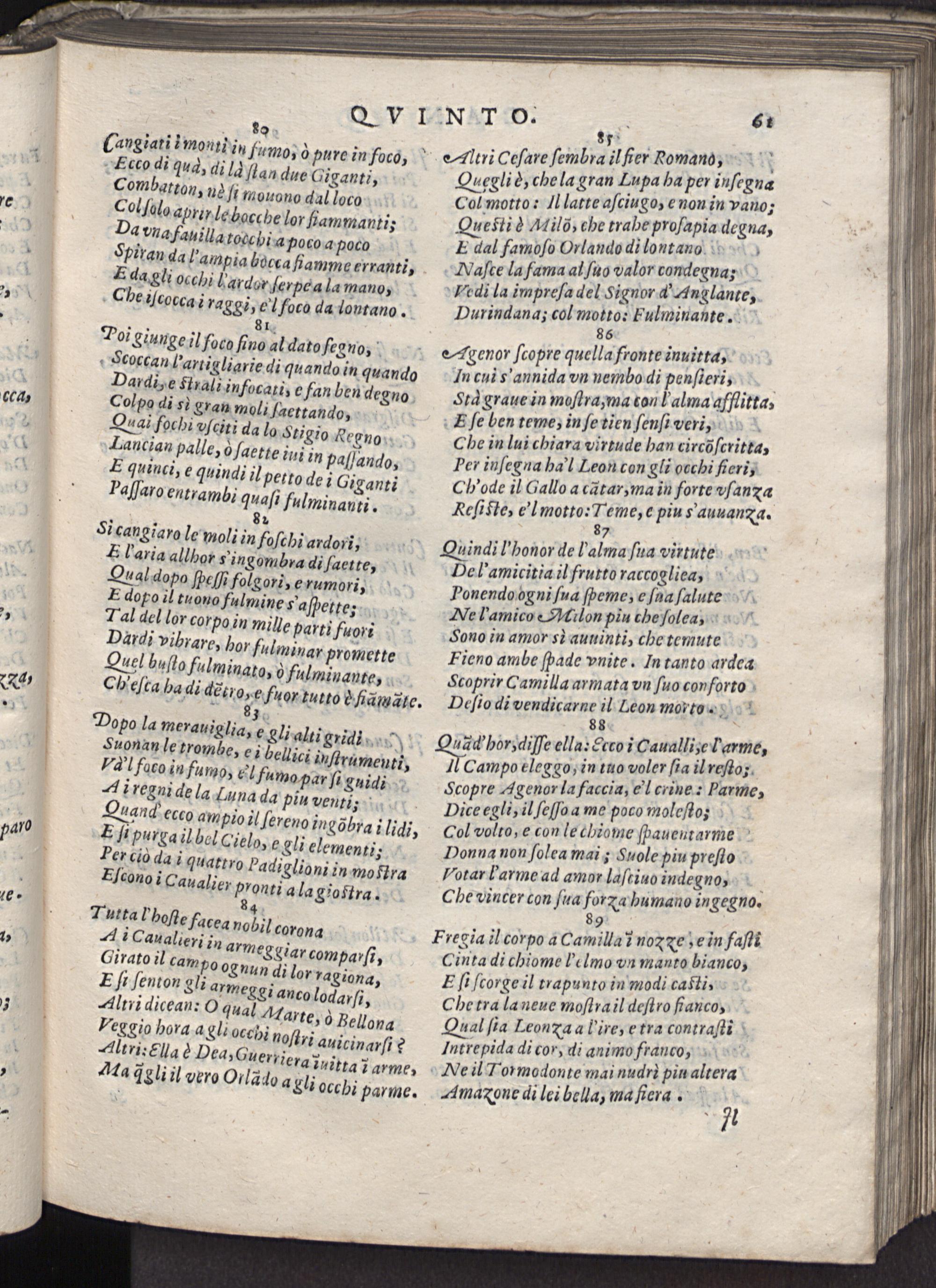31 1onn Dopo la merauiglia,e gi alti gridu Suonan le trombe, ei bellici inſtru meuc⸗ V. l foco in fumo, al fumo par i guiai. Ai Legut de la Luna da piu venti; vaud ecco ampio il ſereno ingöbrai lar