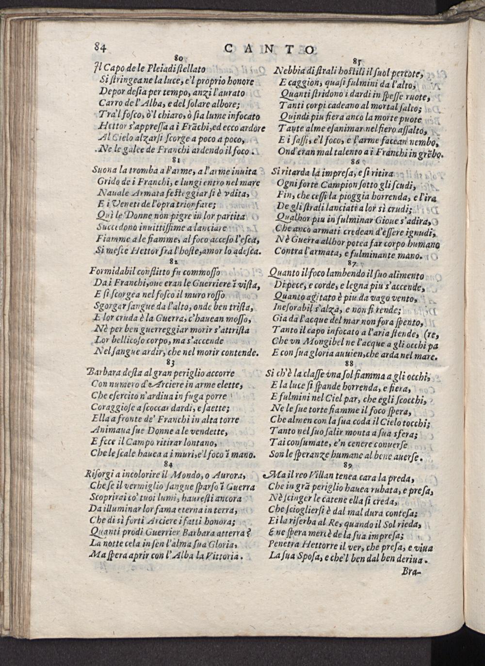 Suona la tromba a Pame, a'arme inuita Grido de i Franchi, e lungi entro nel mare Nauale Armata fefteggiar ſi è dita, Ei UVeneti de l'opra trionfare; 1 Qulle Donne non pigre in lor partita Succe dono inuittiſſime a lanciare Fiamme ale fiamme, al foco acceſol'eſca, Si meſte Hettor fral boſte, amor lo adeſca.