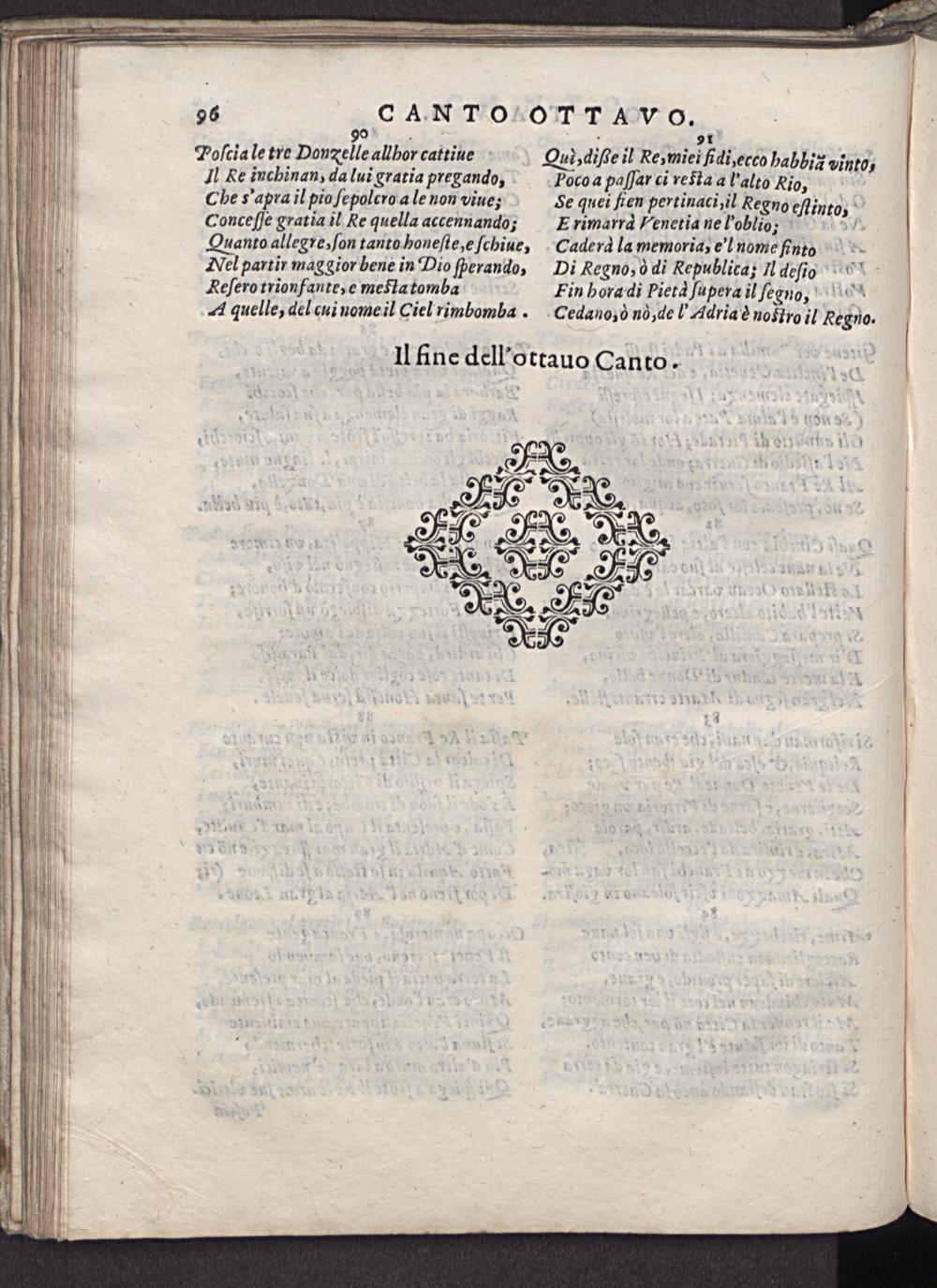¹ 91 Qud, dißee il Re, miei fidi, ecco habbid vinto, Poco a paſſar ci rerta al'alto Rio, Se quei hien pertinaci, il Regno eſlinto, E rimarra enetia ne l'oblio, 83„ Cadera la memoria, e'l nome fnto Di Regno, d di Republica; II deſioi