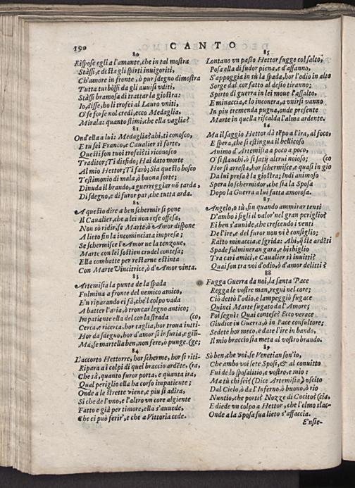 Regga le voſtre man, regui nel core; V Ciò dettò l'odio, e lampeggioò fugace Quinci Marte fugatodal Amore; Poi ſegud? Quai conteſe?&cco verace Giudice iu Guerra,ò in Pace conſultore;, Sedete hor meco, e date l ire in bando, Il mio braccio ſia meta al voſtro brando.