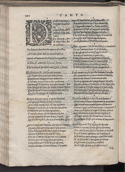 Nuntio del caro amor n'andai ſouentto Doudla nobilta dou'd'"miohouore? ATapra di Pieta col dolce Padre, eon cam ſchiauo chiudermi in prigione, Acui diſſ angoſcioſa,& hor ridenten: Aa incaftume cnadel pienod horrore Deneto Heroe fra le nemithe ſquadre, Donna regger col freno vn pio Campione Conſolator per te fido è preſente, Aqdattar briglia al capo? ab mio dolore Trouaſti ancor, chi le rapaci, e ladre Augiuſtamente,ò pur ſenxa cagione? AMano di morte, ſe non doma, lega?(ga. Mlogle ancor, che le cateneꝛe’ laccio, Quel Cõte egli?, che a te il mio dire iſtie- Quauld pin ſcoſſe, pin danno d'impaccio-