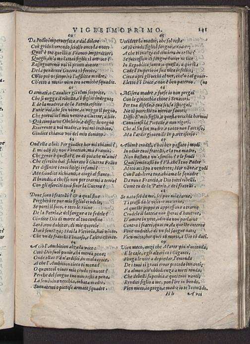 Ond ella a lui: Per giudice hor mi thiami? E mi odij so; non Venetian, ma ranco Che gente è queſtas E tu dꝰ poiche m'ami?