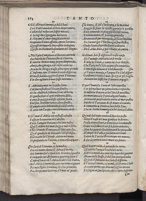 Std ſommerſas e quai ſon Marine ſquadre Comparſe con Nettunoa guerreggiate? Caderd ⁊ mar cõ! Adria?ò del Ciel Padre, Sel' Aadria è immerſa, con tua man regnare Fa mia figlia Veuetias O Dio prouedi, Fa, che prema la terra,&l mar co' picdi.