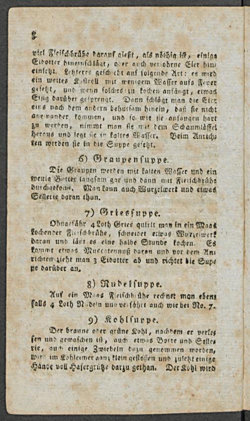 1 8) Rudelſuppe. Auf ein Maas Fieiſchb ühe rechnet man ebenz falls 4 Loth N dein ung verfährt auch wie bei No. 7.