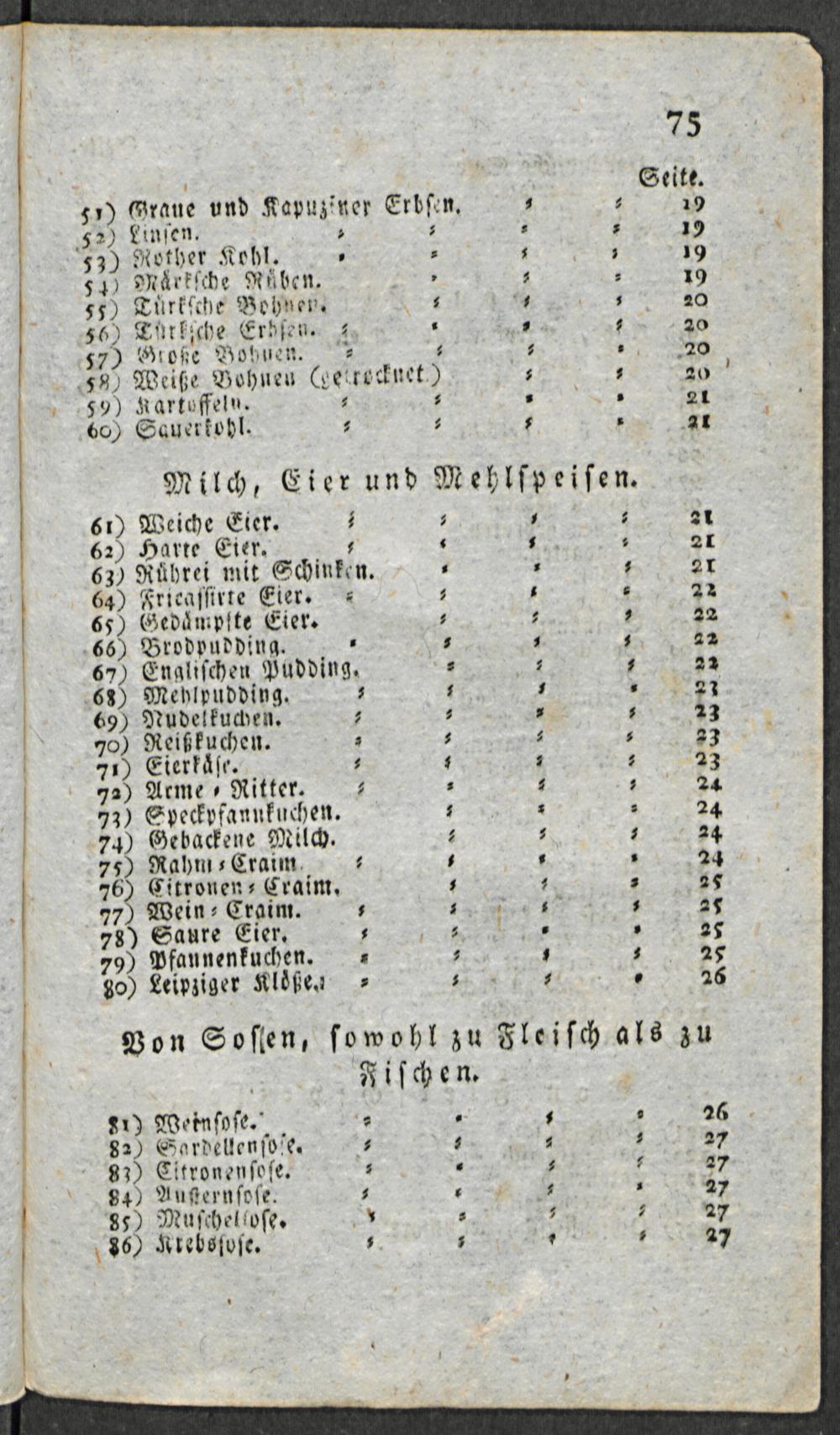 61) Weiche Eier. 1 3 21 62) Harte Eier. 1 ¹ 21 63) Nuͤhrei mit Schinken. 3 3 21 64) Frieaſſirte Eier. ⸗ ¹ 1 3 2²⁸. 65) Gedaͤmpfte Eier. ¹. ⸗ 22. 66) Brodpudding. 2 1 3 22 67) Engliſchen Pudding. ⸗ 1 1 22 68) Mehlpudding. 1 1. 27 69) Nudelkuchen. 7 2 3. 23 7⁰) Reißkuchen. ¹ 1. 23 71) Eierkaͤſe. 1 1. 23 7²) Arme„Ritter. 2 1 1 24 73) Speckpfannkuchen. 3 3 3 24 74) Gebackene Milch. 1 3: 24 75 Rahm⸗Craim 24 25) Citronen⸗Craim. ¹ 25 77) Wein⸗Crgim. ⸗ 4 1. 3 25 78) Saure Eier.. 25 79) Pfannenkuchen. ⸗ 3. 25 30) Leipziger Kloͤße. ⸗ 3 3 26 Von Soſten, ſowohl zu Fleiſch als zu . Fiſchen.