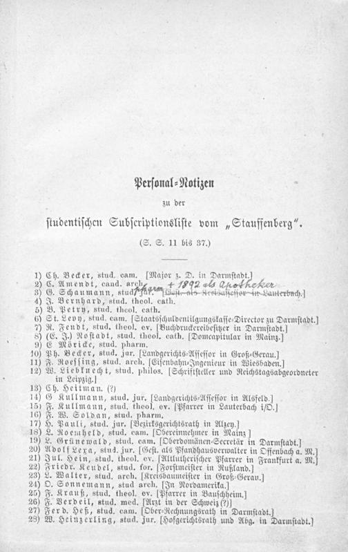 4 zu der ſtudentiſchen Subſeriptionsliſte vom„Stauffenberg“.