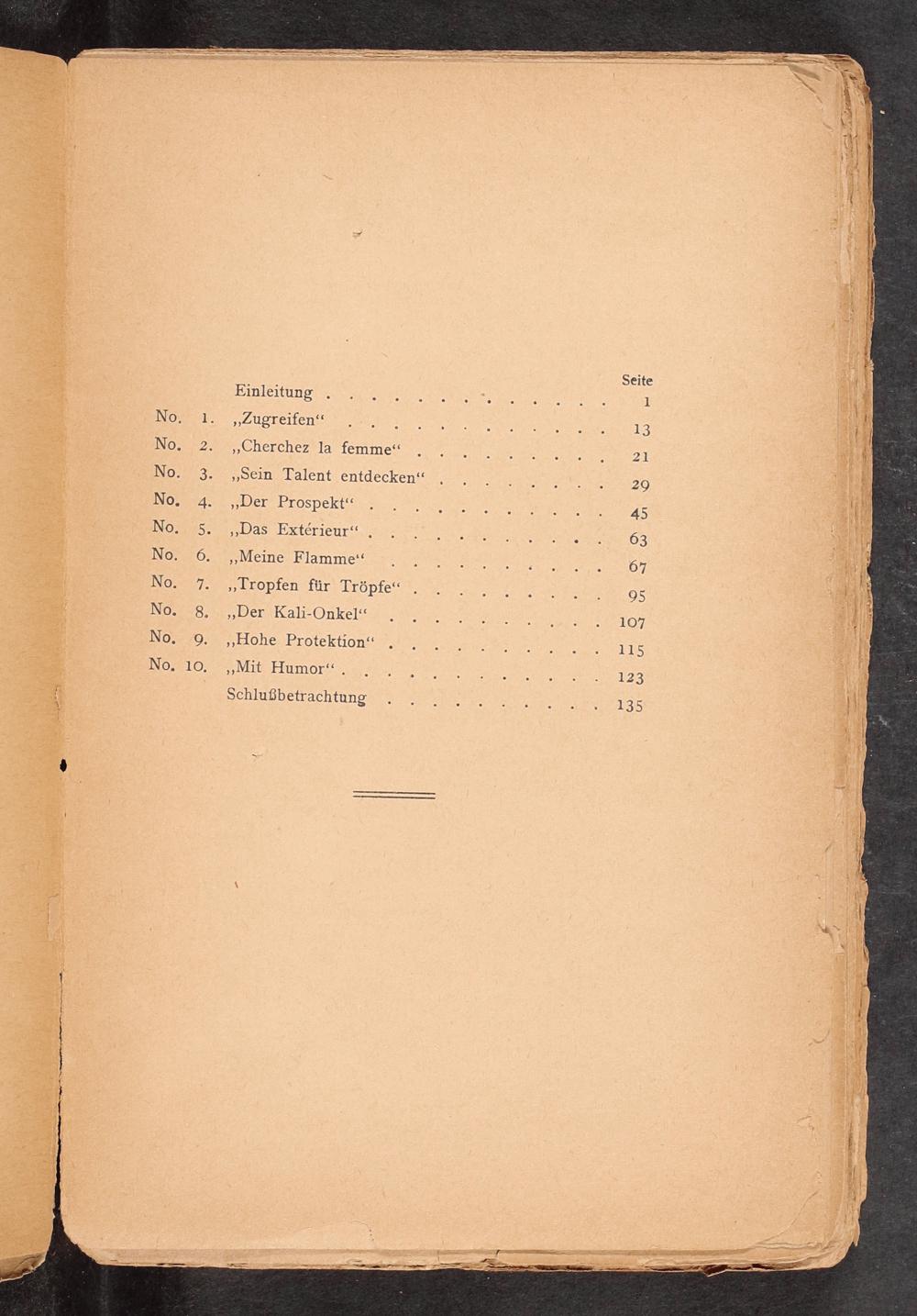 „Cherchez la femme“ „Sein Talent entdecken“ „Der Prospekt“