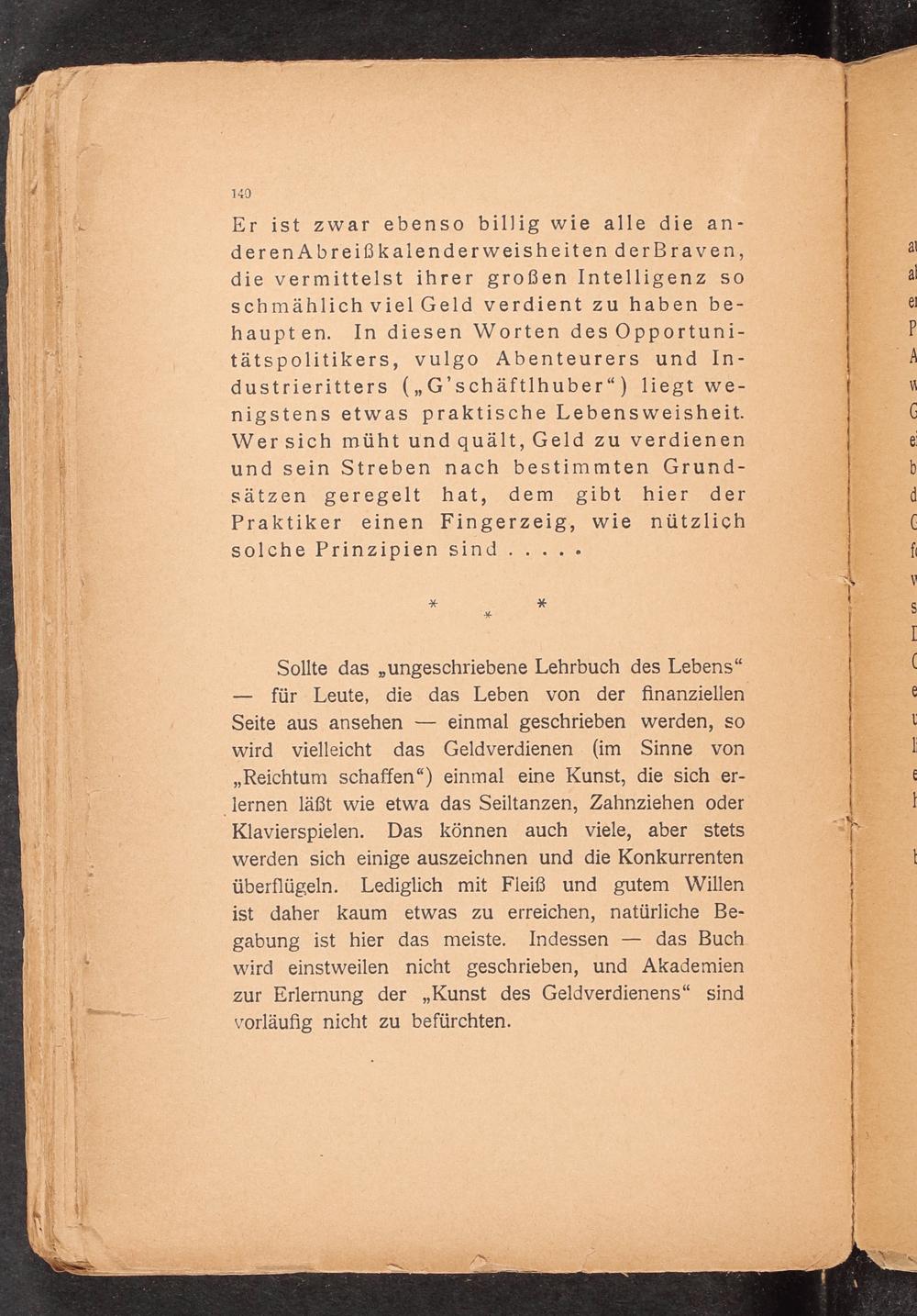 Sollte das„ungeschriebene Lehrbuch des Lebens“ — für Leute, die das Leben von der finanziellen Seite aus ansehen— einmal geschrieben werden, so wird vielleicht das Geldverdienen(im Sinne von „Reichtum schaffen“) einmal eine Kunst, die sich er-