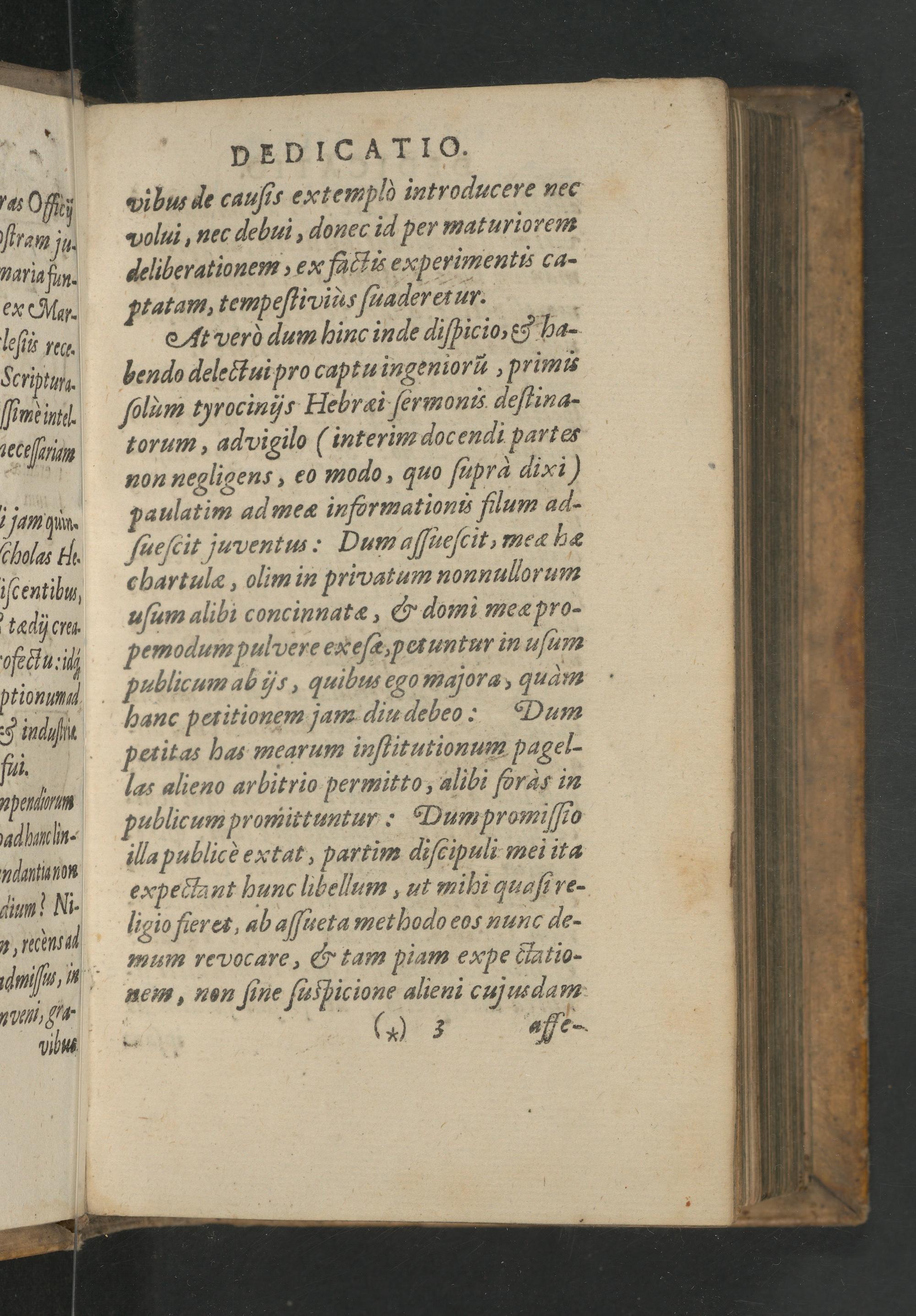 vibus de cauſis extemplo introducere nec polui, nec debui, donec id per maturiorem geüberationem, ex factis ecperimentu ca- ptatam, tempeſtivius ſuaderetur. At verò dum hinc inde diſpicio,& ha- bendo delesͦtui pro captu ingeniorũ, primis folam tyrocinis Hebraæi ſermonis deſtina- torum, ad vigilo interim docendi partes non negligens, eo modo, quo fupra dixi,) paulatim ad meæ infõrmationus filum ad- ſueſcit juventus. Dum aſſueſcit, meæ hæ cebartulæ, olim in privatum nonnullorum uſum alibi concinnatæ,& domi meæ pro- pemodum pulvere eaeſc, petuntur in uſum publicum ab ijs, quibus 29⁰ majora, qudm hanc petitionem jam din debeo. Dum peritas has mearum inſtitutionum pagel- las alieno arbitrio permitto, alibi ſõrar in publicum promittuntur: Dum promiſſio illa publicè extat, partim diſcipuli mei ita expeclant hunc lbellum, ut mihi quaſi re- ligio fieres, ab aſſueta methodo eo⸗ nunc de- mum revocare,& tam piam expe tiatio- vei, non ſine ſusspicione alieni cujusdam