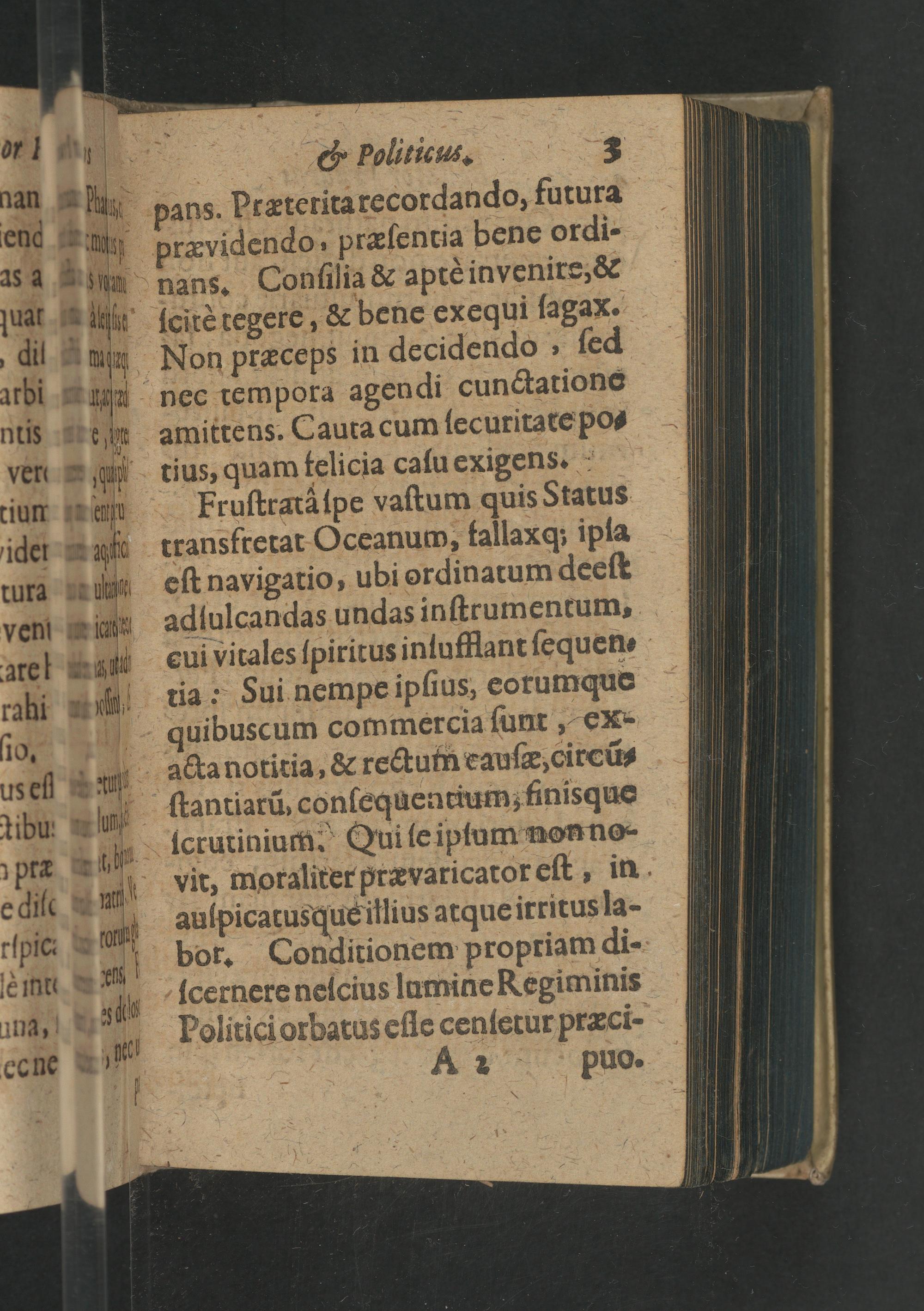 amittens. Cauta cum ſecuritate po⸗ tius, quam felicia caſu exigens. Fruſtratãſipe vaſtum quis Status transfretat Oceanum, fallaxq; ipla eſt navigatio, ubi ordinatum deeſt adiulcandas undas inſtrumentum, eui vitales piritus inlufflant ſequen⸗ tia: Sui nempe ipſius, eorumque quibuscum commercia ſunt, ex- acta notitia,& rectum eauſæ, circũ⸗ ſtantiarũ, conſequentium, finisque lcrutinium. Qui ſe iptum non no- vit, moraliter prævaricator eſt, in aulpicatusque iſſius atque irritus la- bor. Conditionem propriam di- ſcernere neſcius lumine Regiminis Politici orbatus eſſe cenſetur præci- A: puo.