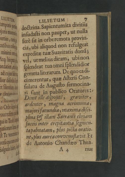 LILIETUM* doctrina. Sapientum ita divitiis inſudaſti non pauper, ut nulla ferè ſit in orbe remota provin- cia, ubi aliquod non refulgeat expeditæ tuæ Suavitatis donũ;