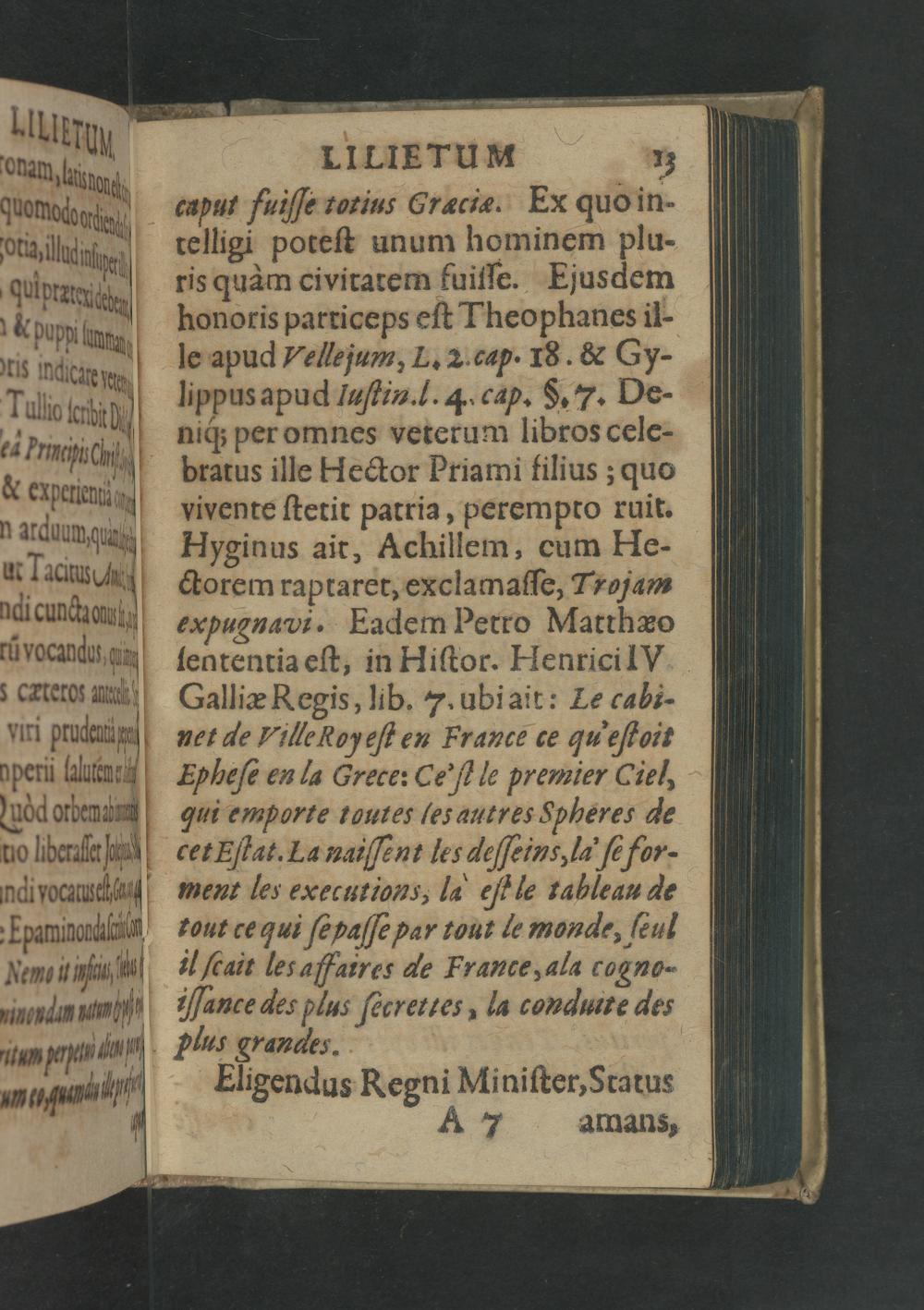 czput fuiſſe torius Græciæ. Ex quo in- telligi poteſt unum hominem plu- ris quàm civiratem fuiſſe. Ejusdem honoris parriceps eſt Theo Phangs i- le apud Vellejum, L. 2 cap. 18.& Gy- lippus apud laſtin.1ſ. 4. cap.§. 7. De- niq́; per omnes veterum libros cele- bratus ille Hector Priami filius; quo vivente ſtetit patria, perempto ruit. Hyginus ait, Achillem, cum He- ctorem raptaret, exc lamaſſe, Trojam evpugnavi. Eadem Petro Matthæo ſententia eſt, in Hiſtor. HenricilIV Galliæ Regis, lib. 7. ubi ait: Le cabi- net de Ville oyeſt en France ce qu eſtoit Epheſe en ſa Grece: Ce'ſt le premier Ciel, qui emporte toutes Ies autres Spheres de cet Eſtat. La naiſſent les deſeins la ſe ſé for- ment les executions, la eſi le tableau de tout ce qui ſe paſſe par tout le monde, ſeul il ſcait ler alſaures de France ala cogno- Mance des plus ſecrettes, la conduite des