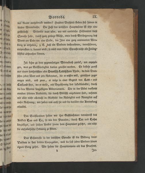 Das Schwereſte in der lettiſchen Sprache iſt die Bildung derer Verben in der dritten Conjugation, weil da faſt jedes Verbum ſeinen eignen Gang gehet. Wir haben die Haupttempora als das Praeſens,
