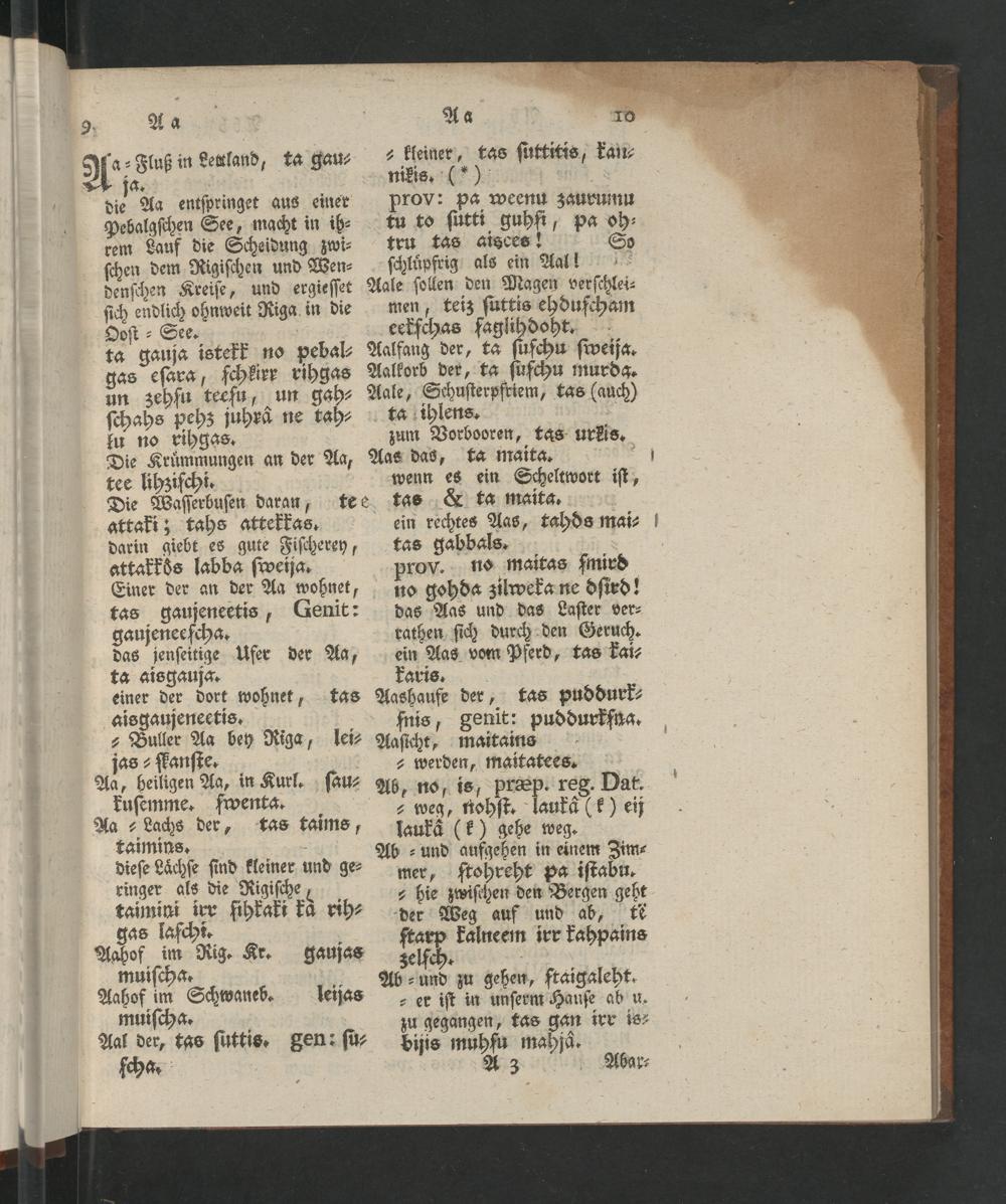 ² weg, nohſt. laukã(k) eij laukaͤ(k) gehe weg. b Ab⸗ und aufgehen in einem Zim⸗ mer, ſtohreht pa iſtabu. ² hie zwiſchen den Bergen geht der Weg auf und ab, te fear kalneem irr kahpains zelſch. Ab⸗ und zu gehen, ſtaigaleht. ²er iſt in unſerm Hauſe ab u. zu gegangen, tas gan irr is⸗ bijis muhſu mahjaͤ.