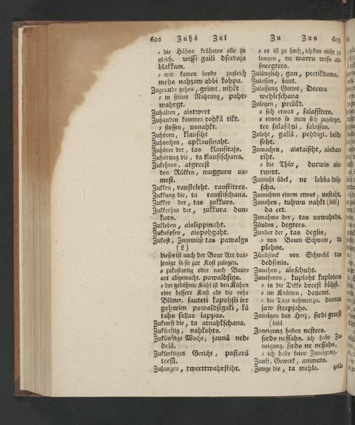 Zukken, rauſteleht. rauſtitees. ſcha. Zukkung die, ta rauſtifchana. Zumubhten einem etwas, uoſtaht. Zukker der, tas zukkurs. Zunahen, tuhwu nahkt(bibl)