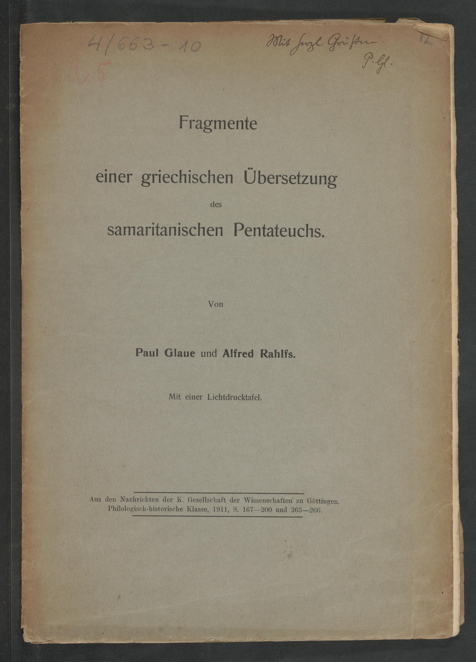Aus den Nachrichten der K. Gesellschaft der Wissenschaften zu Göttingen. Philologisch-historische Klasse, 1911, S. 167— 200 und 263—266.