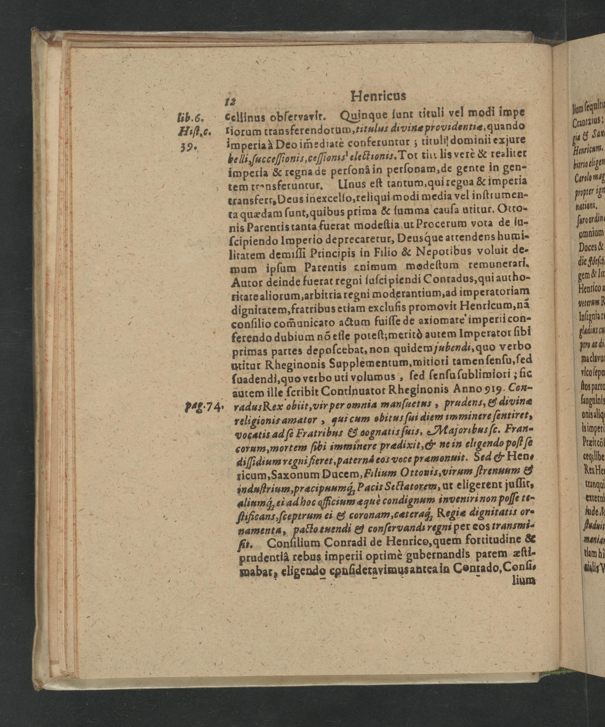 ferendo dubium nõ eſſe poteſt;meritò autem Imperator ſibi primas partes depoſcebat, non quidem jubendi, quo verbo utitur Kheginonis Supplementum, mitiori tamen ſenſu, ſed ſuadendi, quo verbo uti volumus, ſed ſenſu ſublimiori; ſic autem ille ſcribit Continuatot Rheginonis Anno 919. Con- radus Rex obiit, vir per omnia manſuetus, prudens,& divinæ religionis amator, qui cum obitus ſui diem imminere ſentiret, vocatis ad ſe Fratribut& oognatis ſuis, coram, mortem ſibi imminere praædixit,& ne in ehgendo poſt ſe