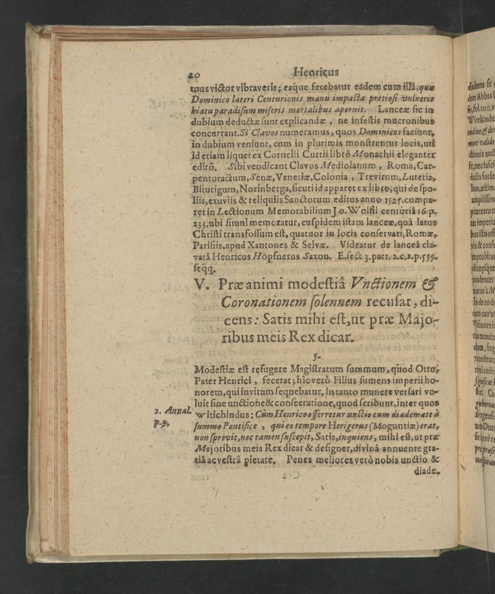 Arnul luit ſine unctione& conſecratione, quod ſcribunt, inter quos 2. Mudt. w jtichindus: Cum Henricoe Verretur unctio cum diademate àd b non ſprevit, nec tamen ſaſoepit, Satis, inquiens, mihi eſt, ut præ . Aajoribus meis Rex dicar& deſigner, divinà annuente gra- b ni ac veſttà pietate, Penes meliores verò nobis unctio&