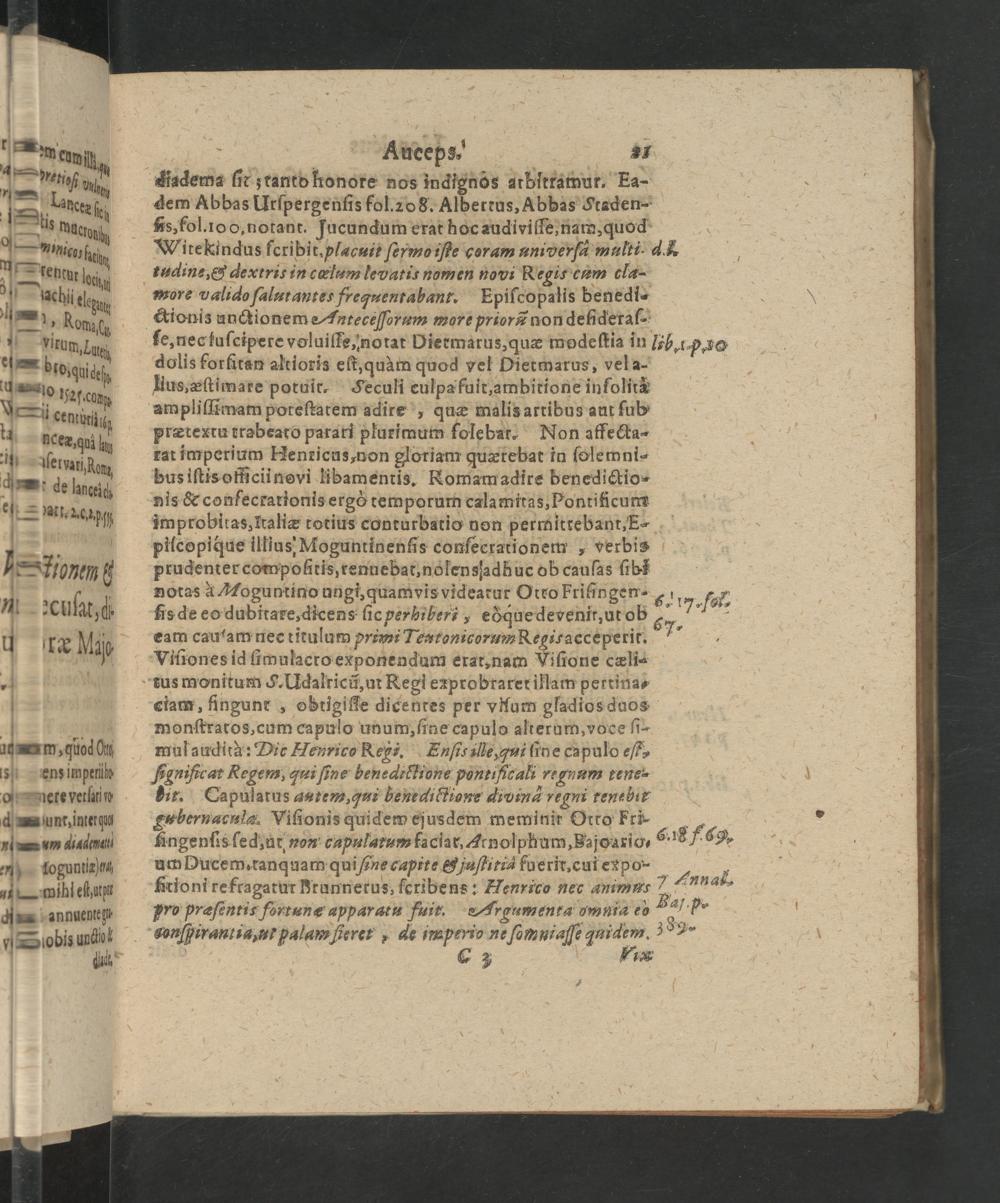 monſtraros, cum capulo unum, ſine capulo alterum, voce ſi- mulaudità: Dic Henrico Regs. Enſis ille, qui ſine capulo eſt- hignificat Regem, qui ſine benedittione pontificali regnum tene=