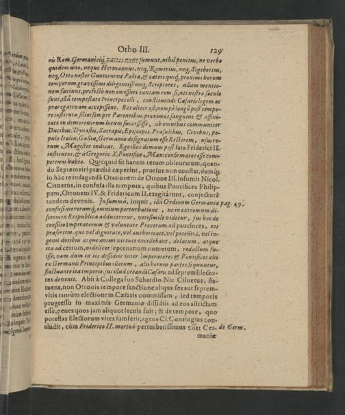 tes devenit. Abit à Collega ſuo Schardio Nic Cilnerus, ſta- tuens, non Ottonis tempore ſanctione aliqua ſex aut ſeptem- viris tantùm electionem Cælaris commiſſam, led temportis progreſſu in maximis Germaniæ diſſidiis ad eos aſtrictam