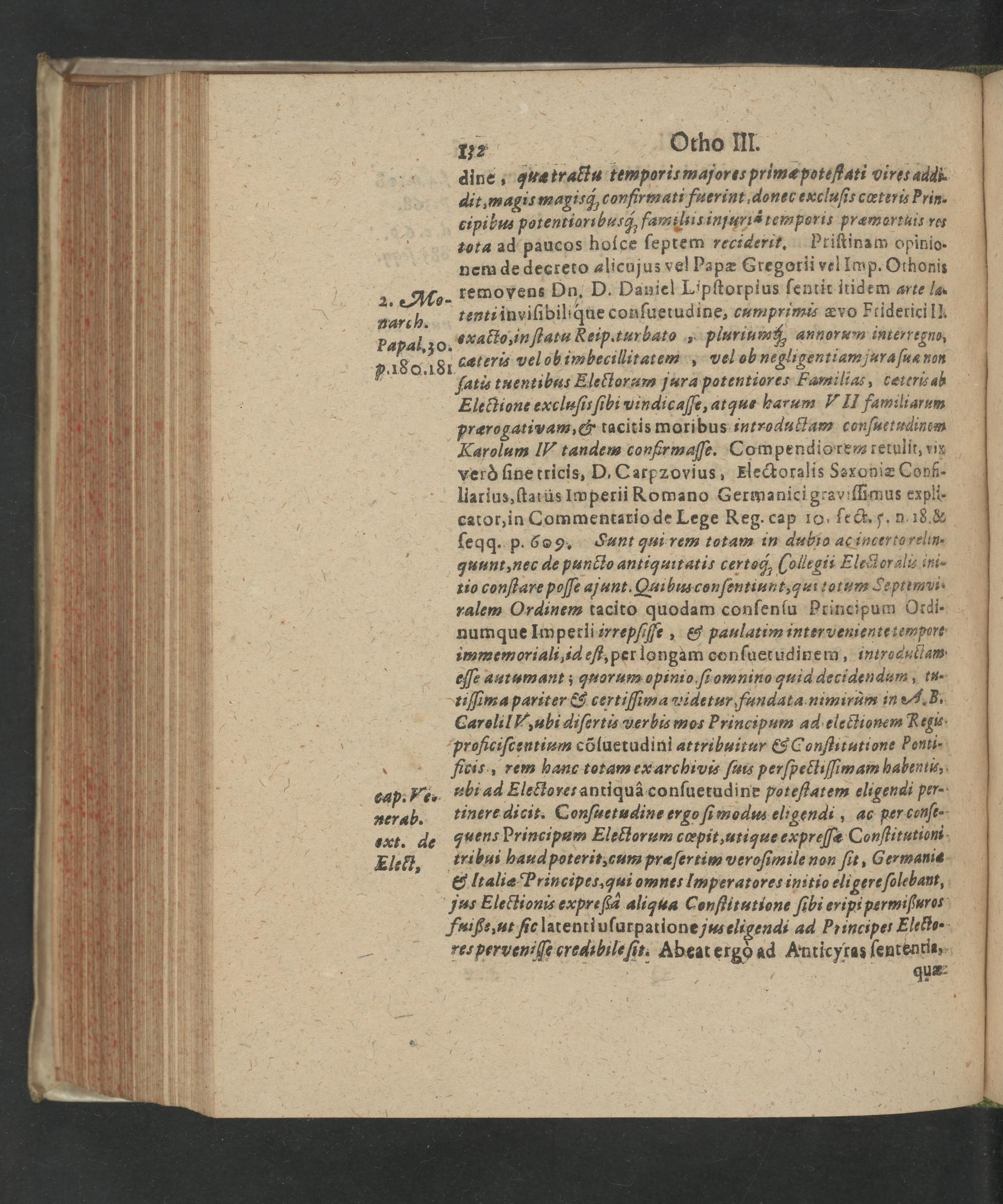 ſatis tuentibus Electorum jura potentiores Familias, tæterizab Ele(ctione excluſis ſibi vindicaſſe, atqus harum I II familiarum prærogativam,& tacitis moribus introduttam conſuetudinem Karolum I tandem confrmaſſe. Compendiorem tetulit, vin verò ſine tricis, D, Carpzovius, EHectoralis Sexoniæ Conf- liarius, ſtarüs Iwperii Romano Germanici graviſſimus expli- cator, in Commentario de Lege Reg. cap 10., ſect. †. n. 18.& ſeqq. p. 609. FJunt qui rem totam in dubio ac incerto relin- quunt, nec de puncto antiquitatis certog,(ollegii Elext er alis ini- tio conſtare poſſe ajunt. Quibus conſentiunt, qui totum Jeptimvi- ralem Ordinem tacito quodam conſenſu Principum Oxdi- numque Imperii irrepſiſfe,& paulatim inter veniente tempore immemoriali, id eſt, per longam conſuetudinem, introdutlam. eſſe autumant; quorum opinio ſi omnino quid decidendum, tu- tiſſima pariter& certiſſima videtur fundata nimirum in A. B. Carelil, ubi diſertis verbis mos Principum ad electionem Regis proficiſcentium cõſuetudini attribuitur& Conſtitutione Ponti- ficis, rem hano totam ex archi vis ſuuis perſpettiſſimam habentiu,
