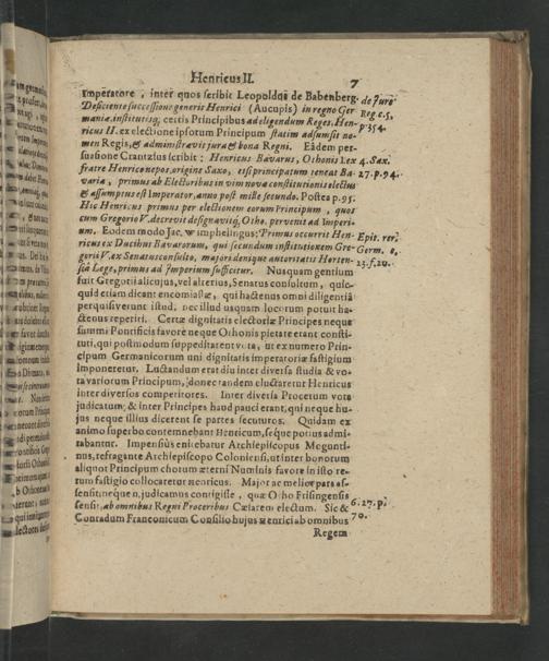 fuit Gregorii alicujus, vel alterius, Senatus conſultum, quic- quid etiam dicant encomiaſſæ qui hactenus ompi diligentià perquiſiverunt iſtud, pec illud usquam locorum potuit ha- ctenus reperiri. Certæ dignitatis electoriæ Ptipcipes neque ſummi Pontificis favore neque Othonis pietate erant conſti- tuti, qui poſtmodum ſuppeditarent vota, ut ex numero Ptin- cipum Germanicorum uni dignitatis imperatoriæ faſtigium imponeretur. Luctandum erat diu inter diverſa ſtudia& vo- ta variocum Principum, donec tandem eluctaretur Henricus inter diverſos comperitores. Inter diverſa Procetum vota judicatum,& inter Ptincipes haud pauci erant qui neque hu- jus neque illius dicerent ſe partes ſecuturos. Quidam ex animo ſuperbo contemnebant Henricum, ſe q́ue potius admi- rabantur. Impenſius eniccbatur Atchiepiſcopus Mogunti-